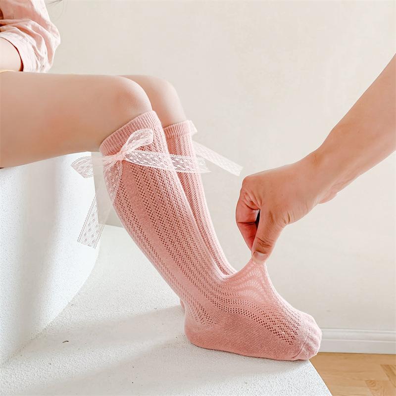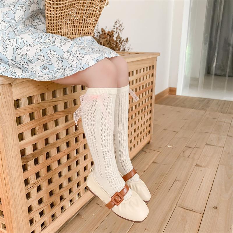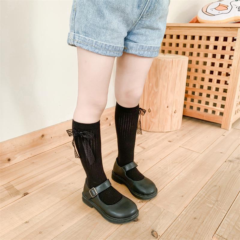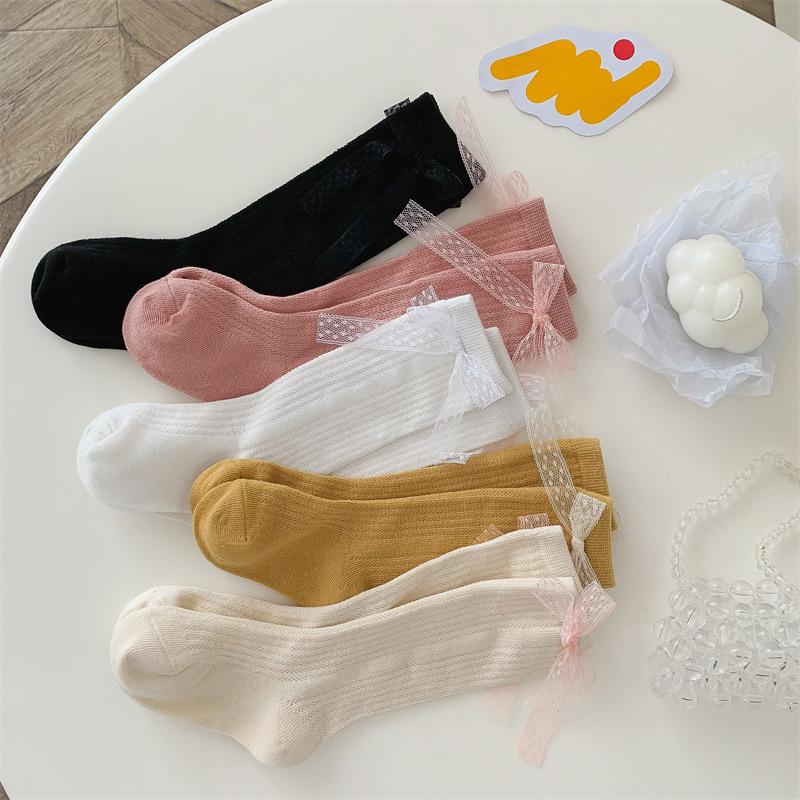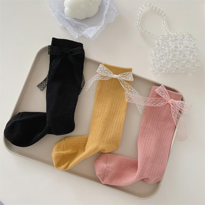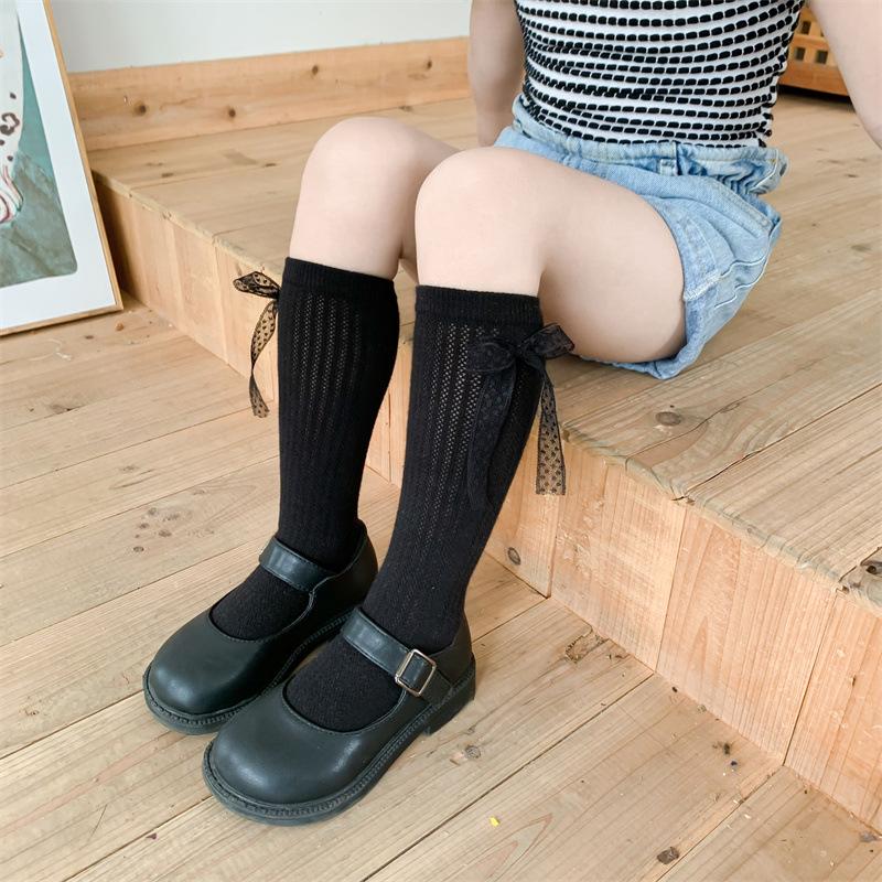 Calcetines finos de algodón para niñas, de primavera y verano, de longitud media, con lazo de princesa