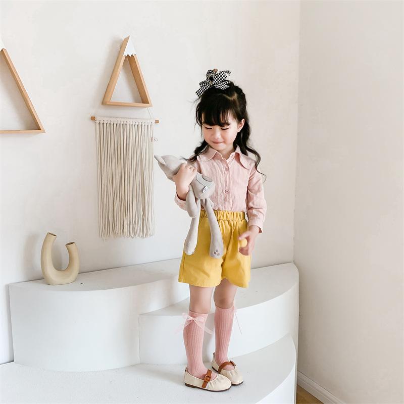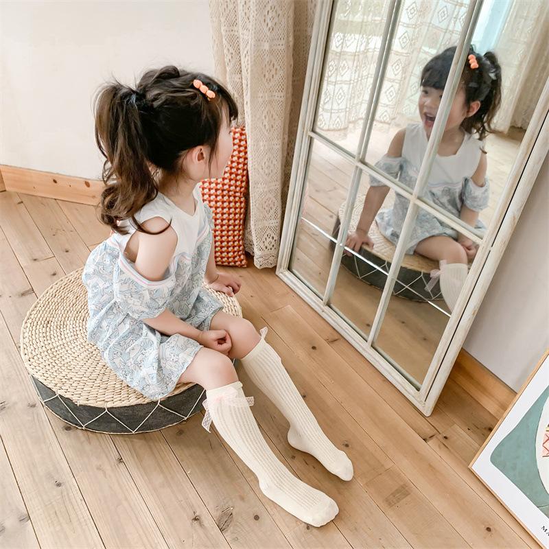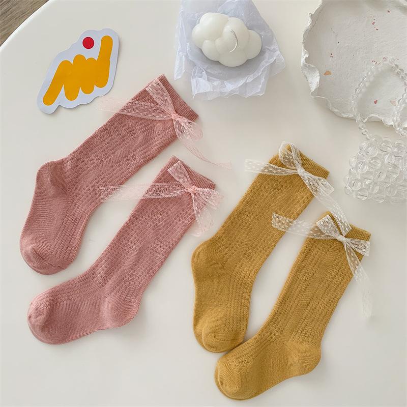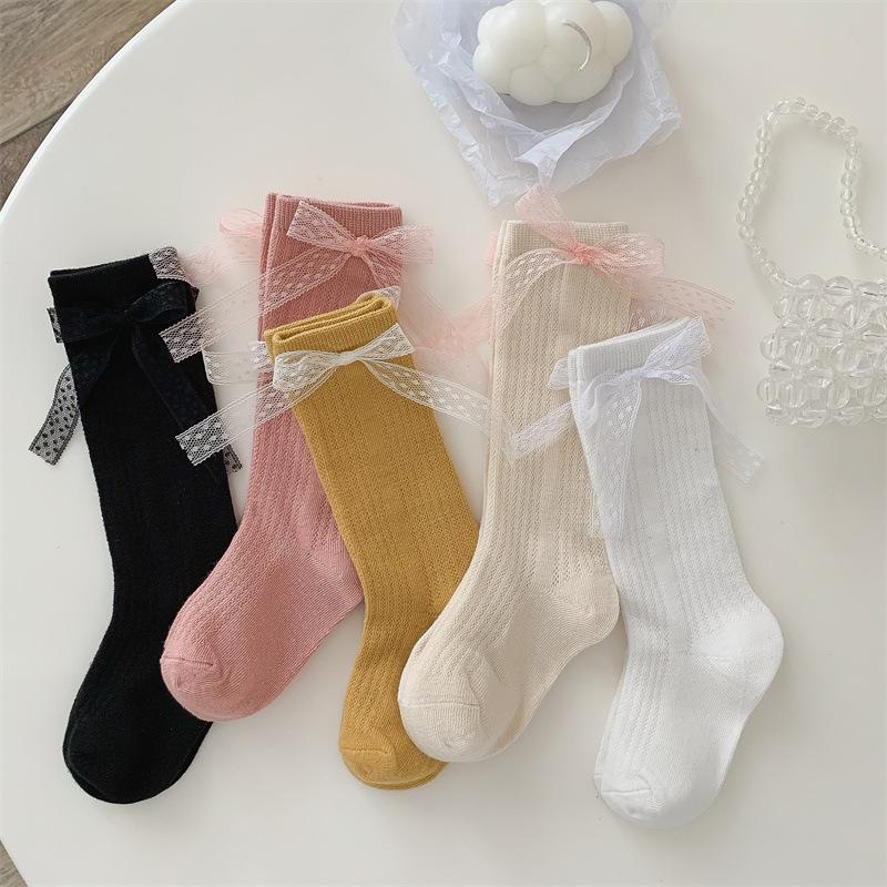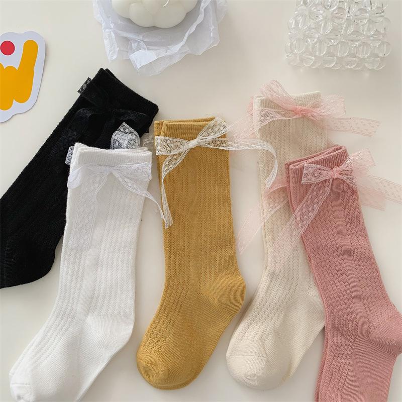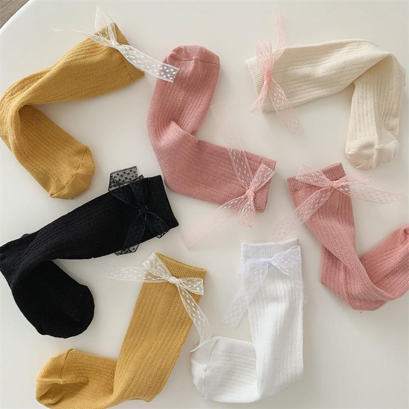 Calcetines finos de algodón para niñas, de primavera y verano, de longitud media, con lazo de princesa