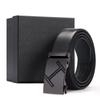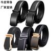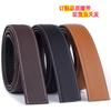 Cinturón plano de cuero de 3,5 pulgadas sin hebilla para hombre, de piel de vaca negra, con hebilla lisa y estampado de lichi, capa superior de cuero.