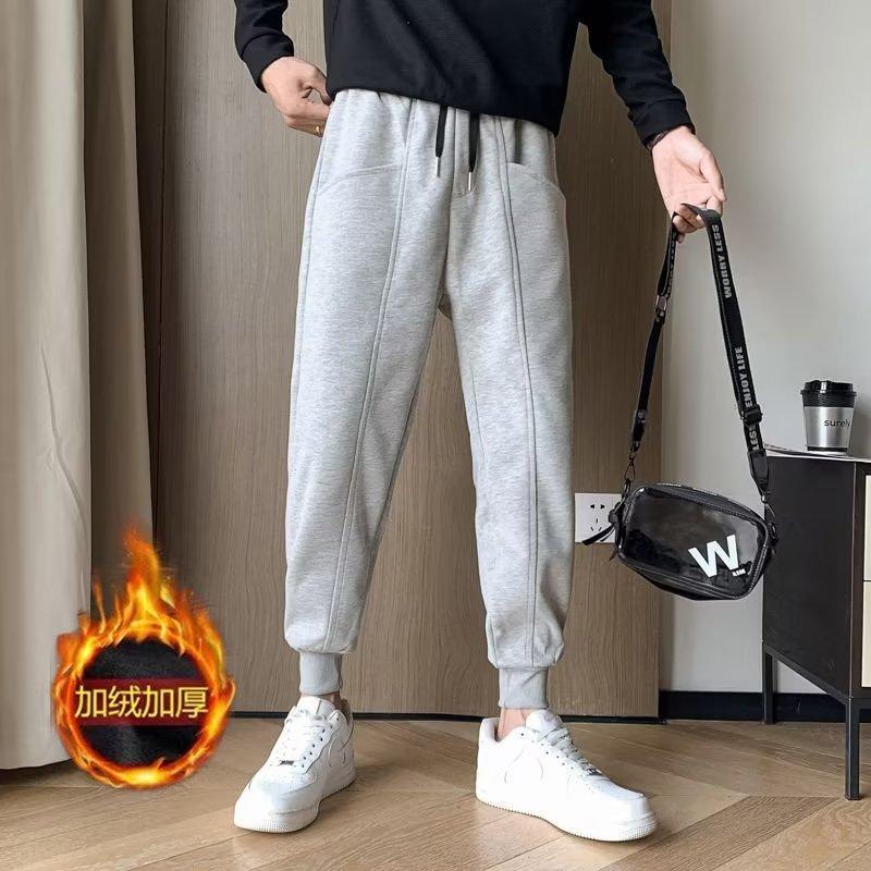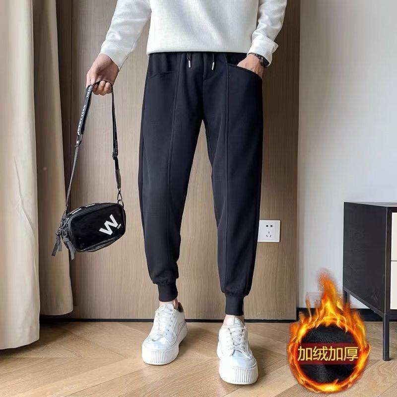 Pantalones deportivos para hombre con forro polar, corte ajustado, estilo coreano, moda de primavera y otoño, marca de moda, mallas, pantalones deportivos sueltos hasta el tobillo, pantalones casuales para hombre