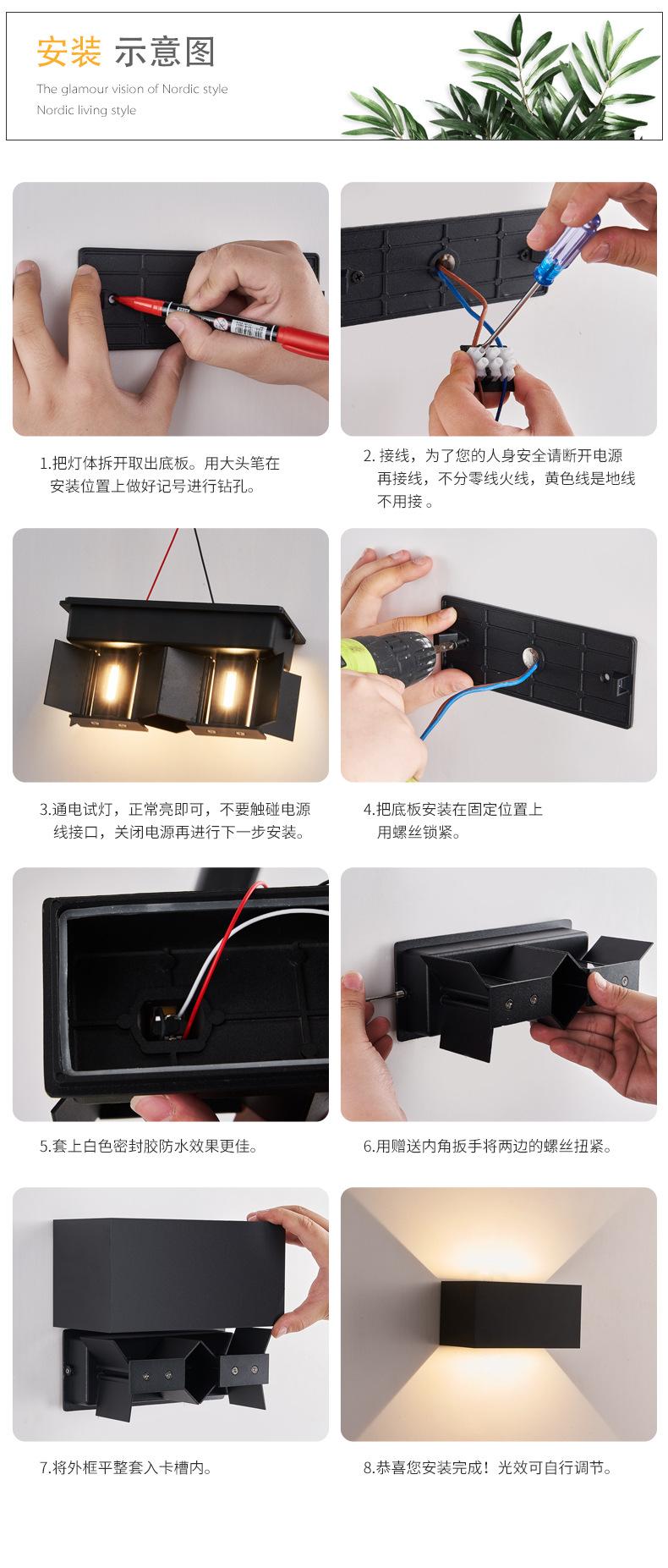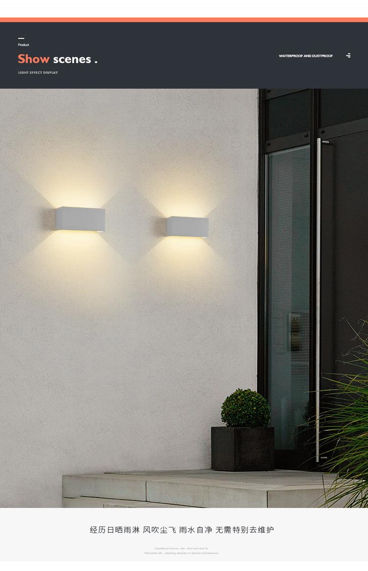 Lámpara de pared exterior impermeable, lámpara de pared exterior, villa, patio, jardín, pared, puerta, foco de doble cabezal, bañador de pared LED para exterior