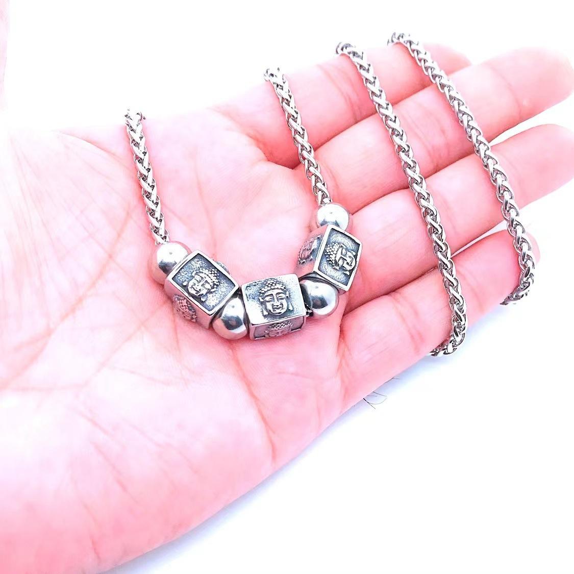 Collar con colgante de cuentas de acero y titanio de moda nacional original para hombres y mujeres, accesorios de moda para parejas, estilo hip hop, estilo hipster de calle larga.