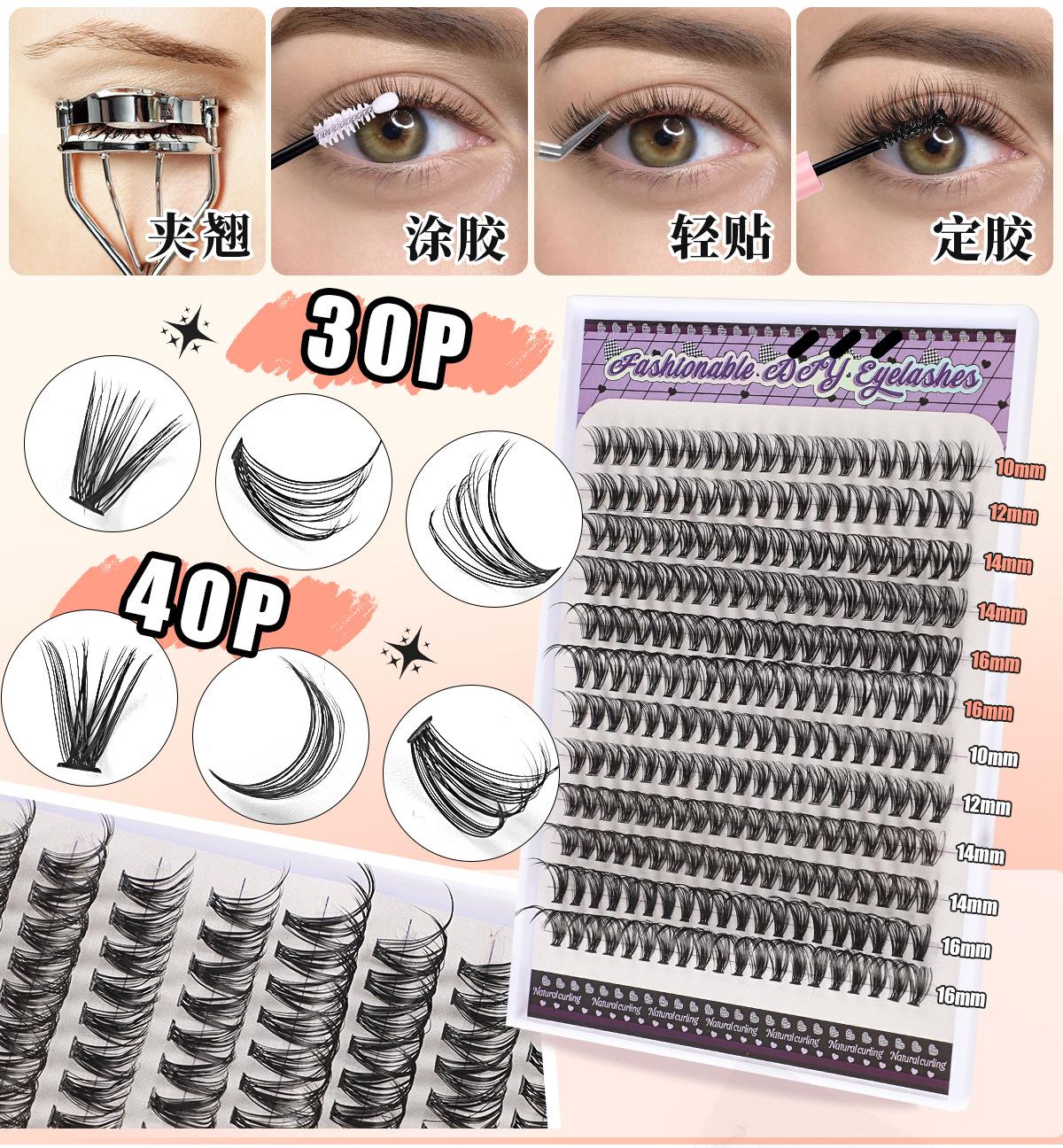Pestañas Postizas Europeas y Americanas Transfronterizas Nuevas DIY Segmentadas de Gran Capacidad Pestañas Postizas de Grupo Individual Injertadas Naturales Gruesas Set