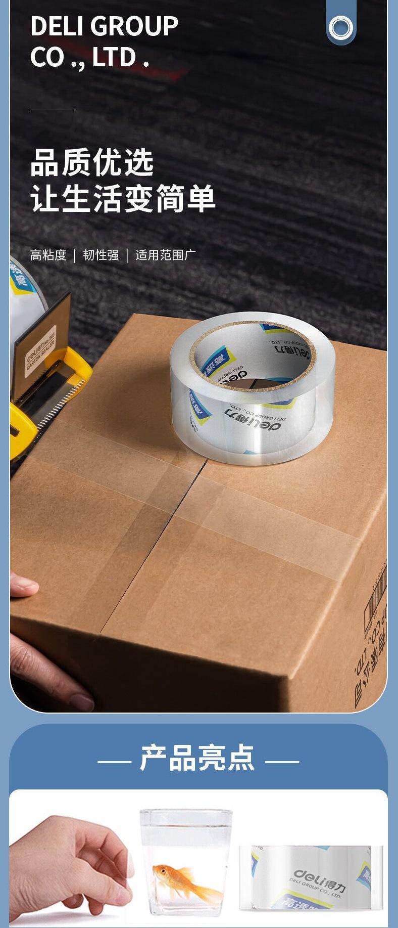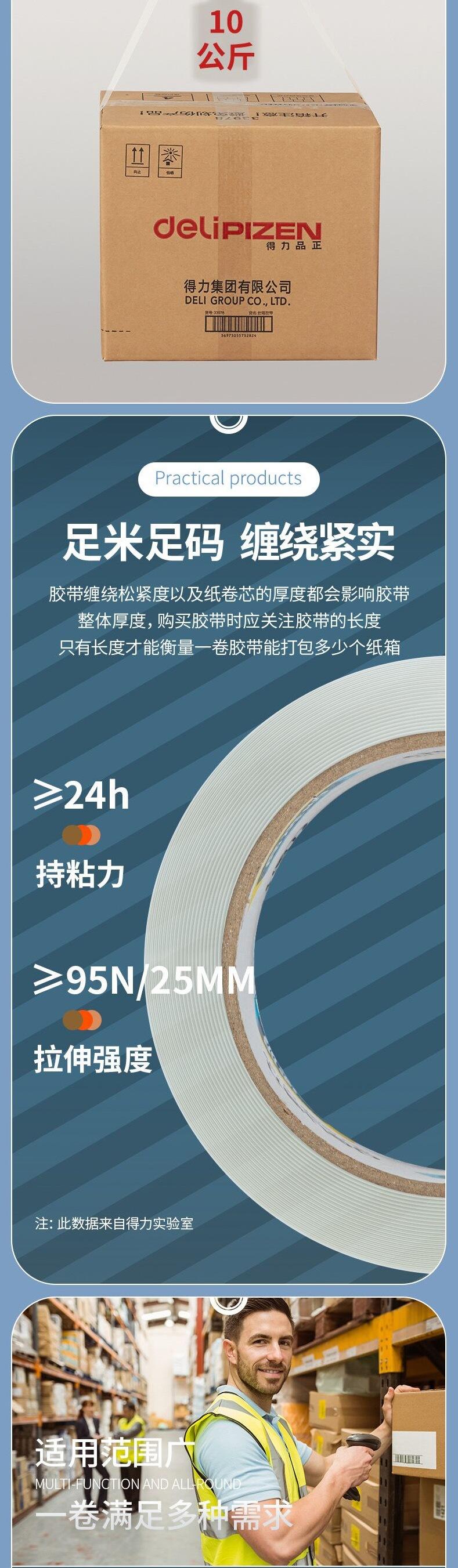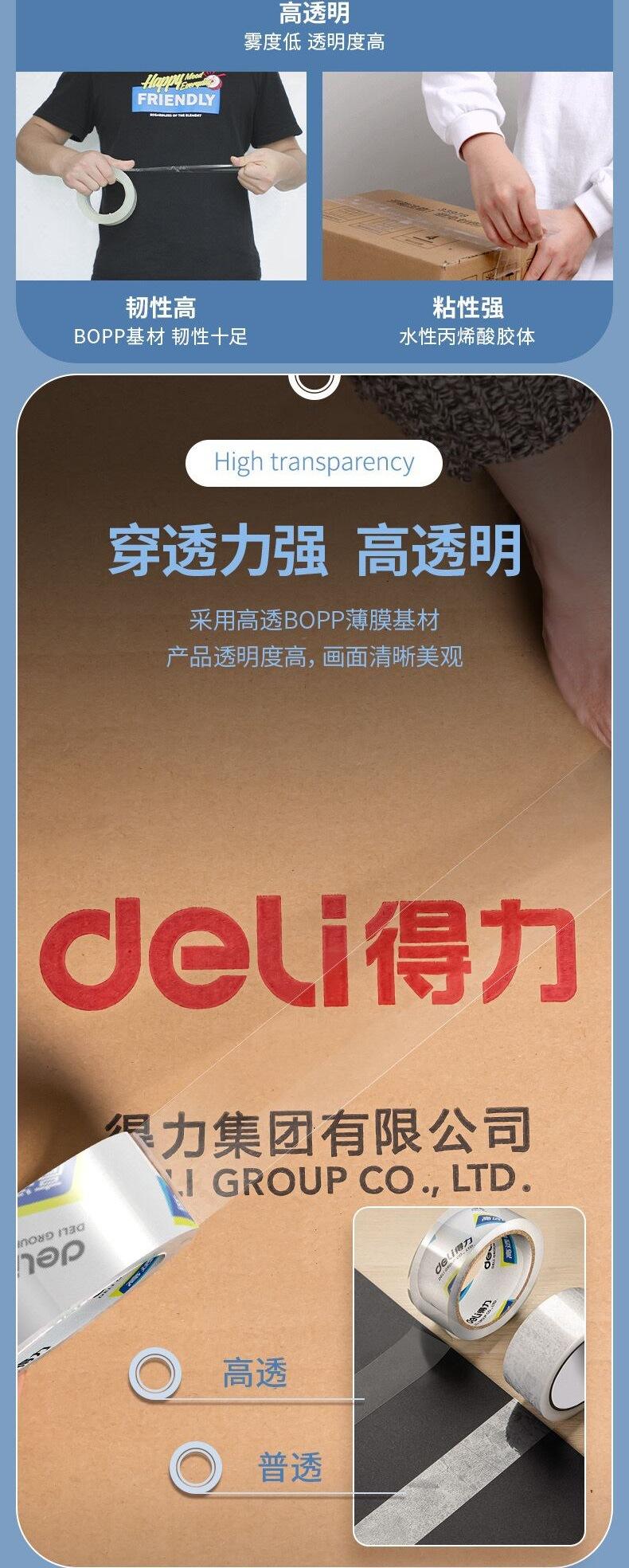 Cinta de embalaje Deli 30175 45mm * 100y * 50um alta permeabilidad express almacén logística cinta de embalaje