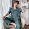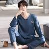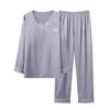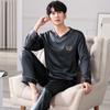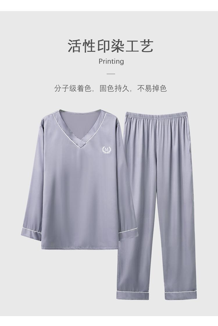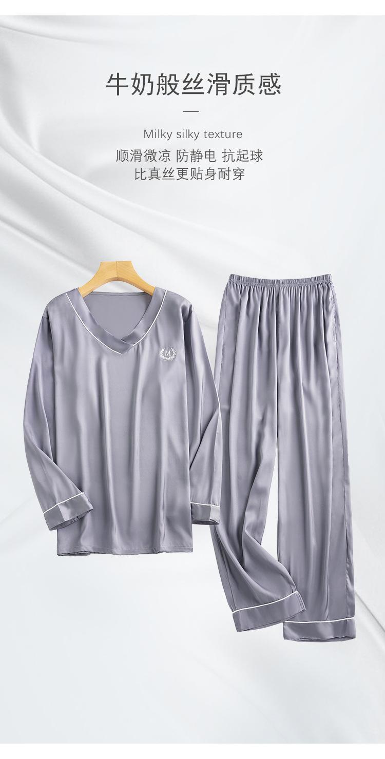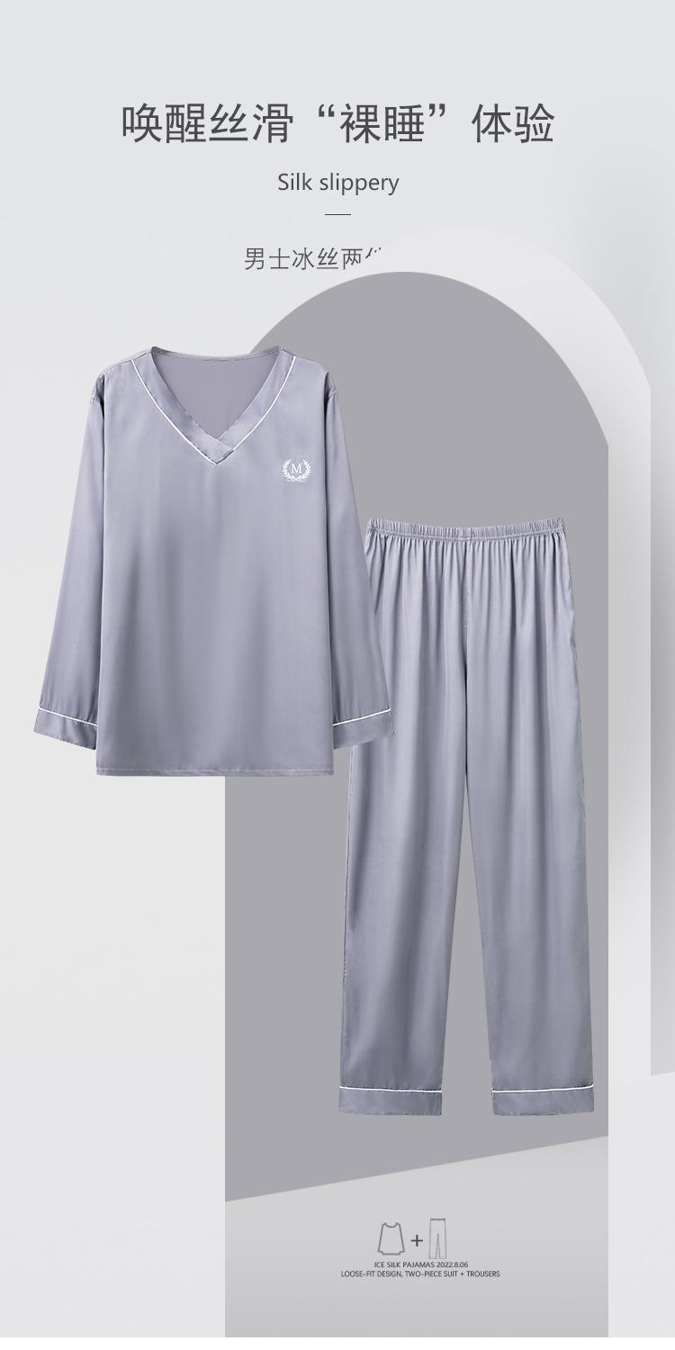 Pijamas de hombre para primavera y otoño, de seda helada, de manga larga, de seda artificial, de talla grande, con cuello en V, para primavera y verano, para el hogar.
