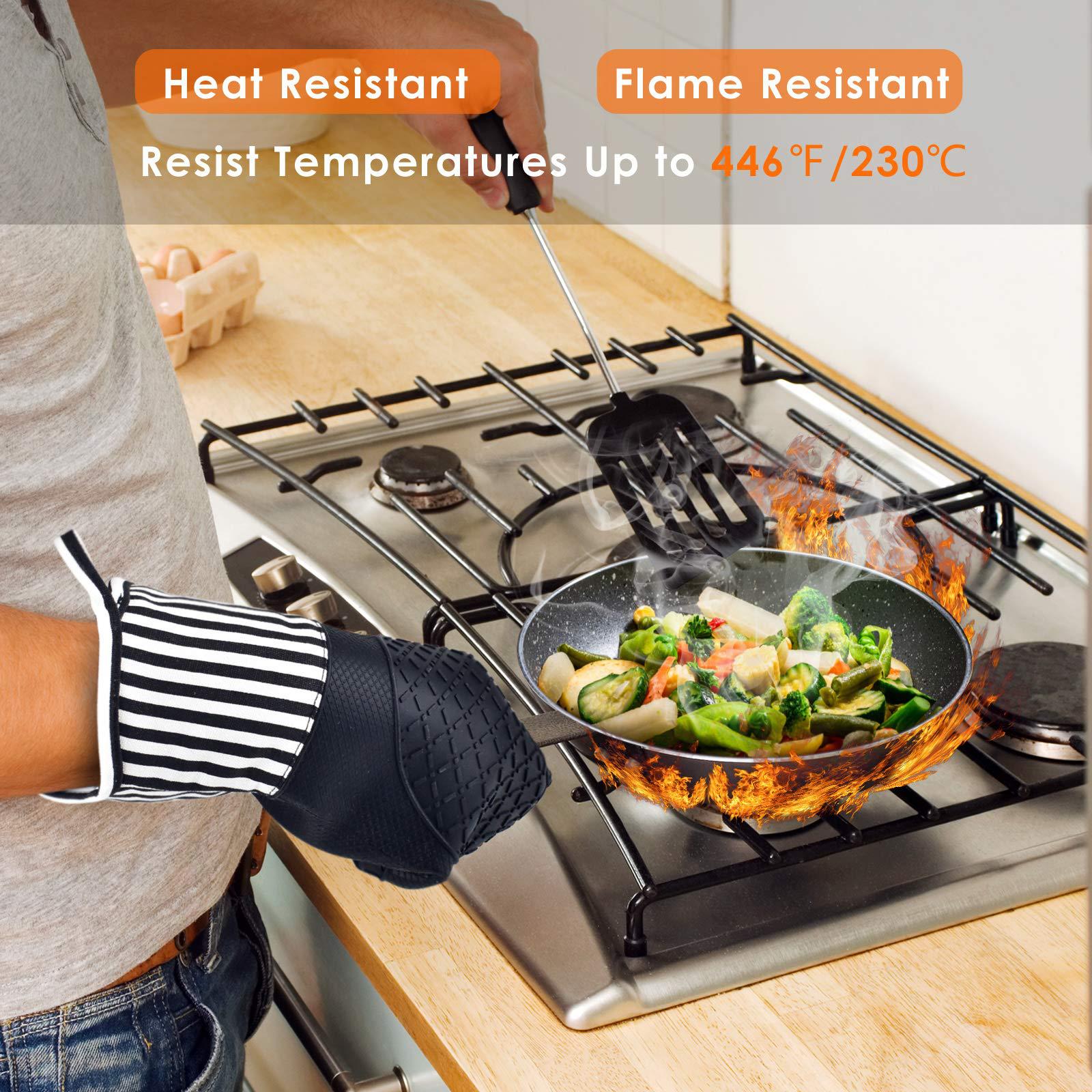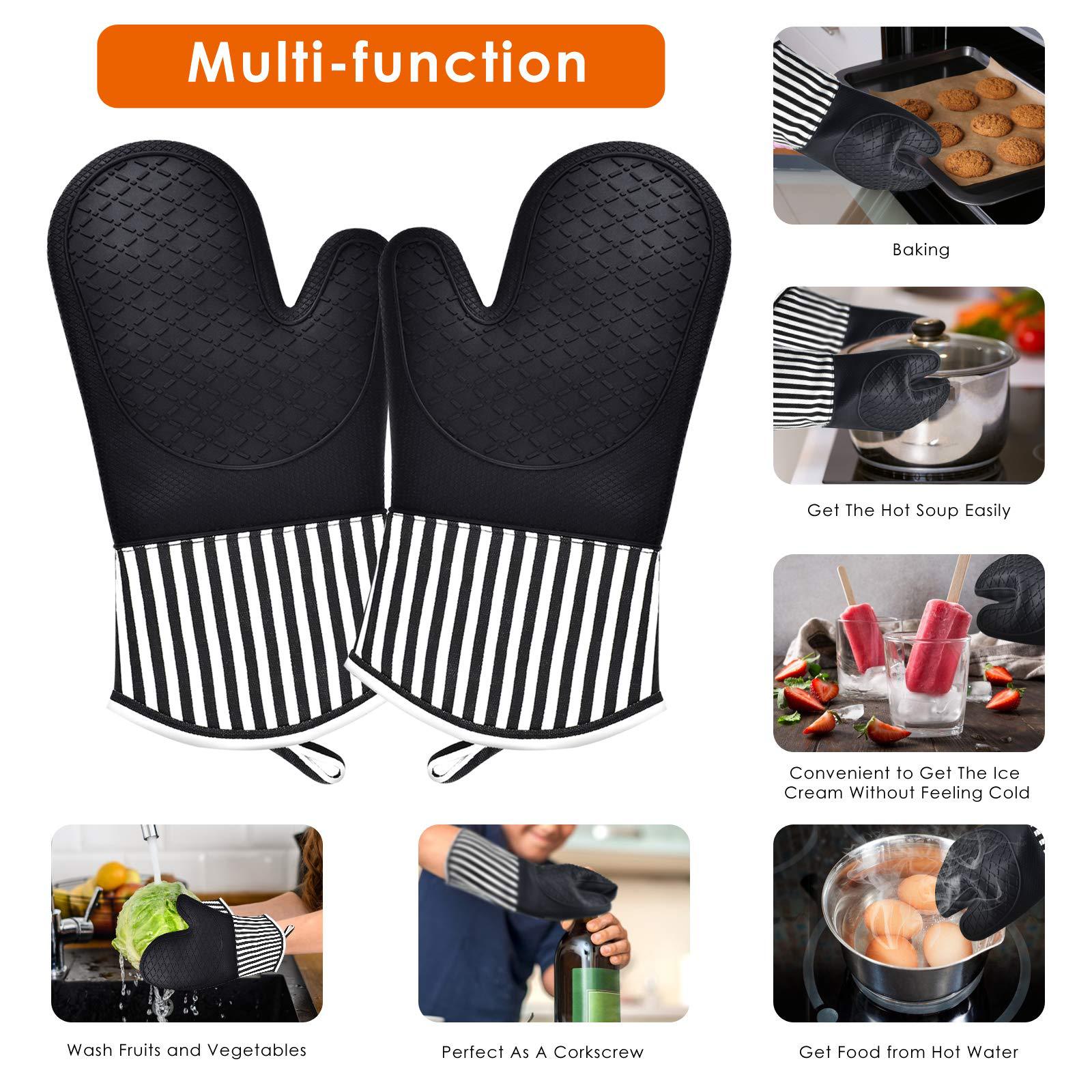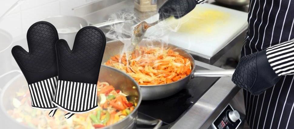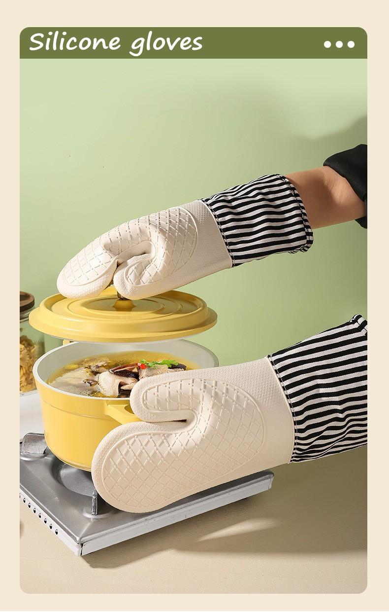 Guantes de silicona para horno transfronterizos resistentes al calor antideslizantes forro de algodón suave guantes de cocina accesorio para cocinar hornear guantes para barbacoa