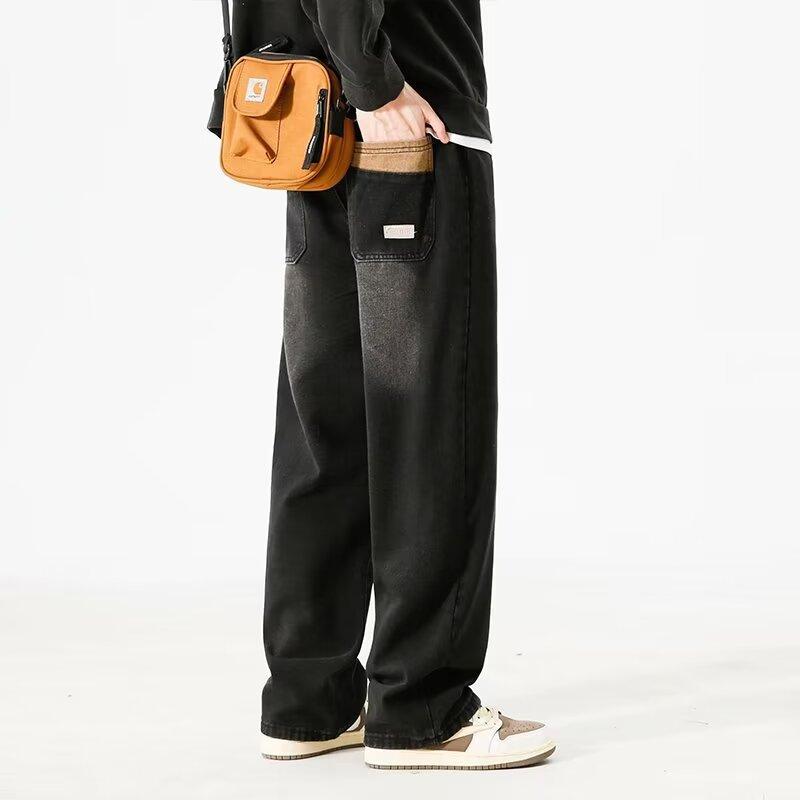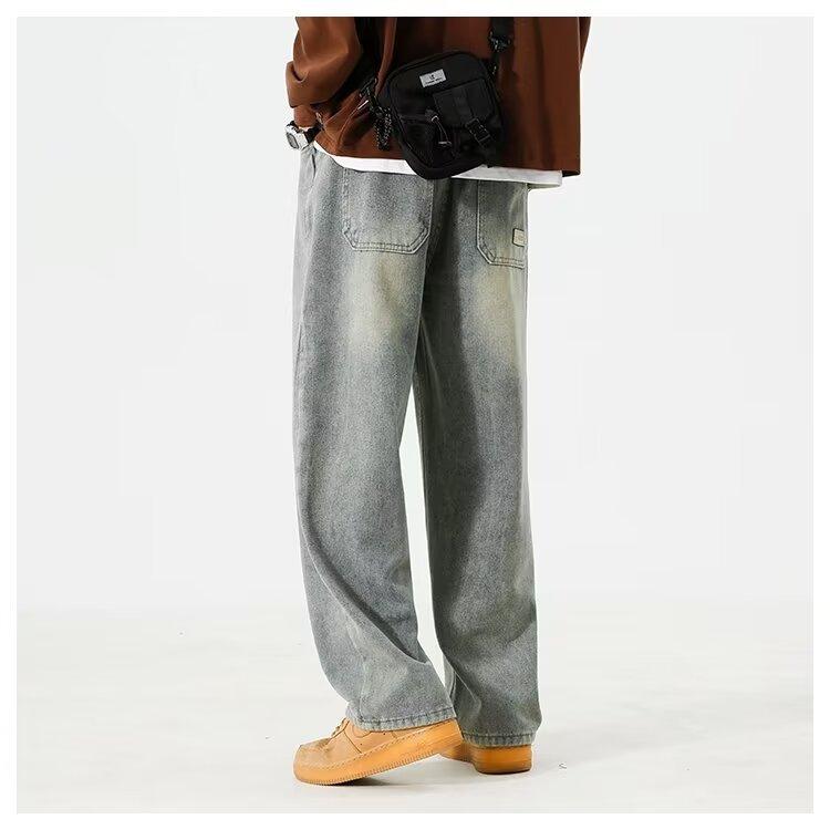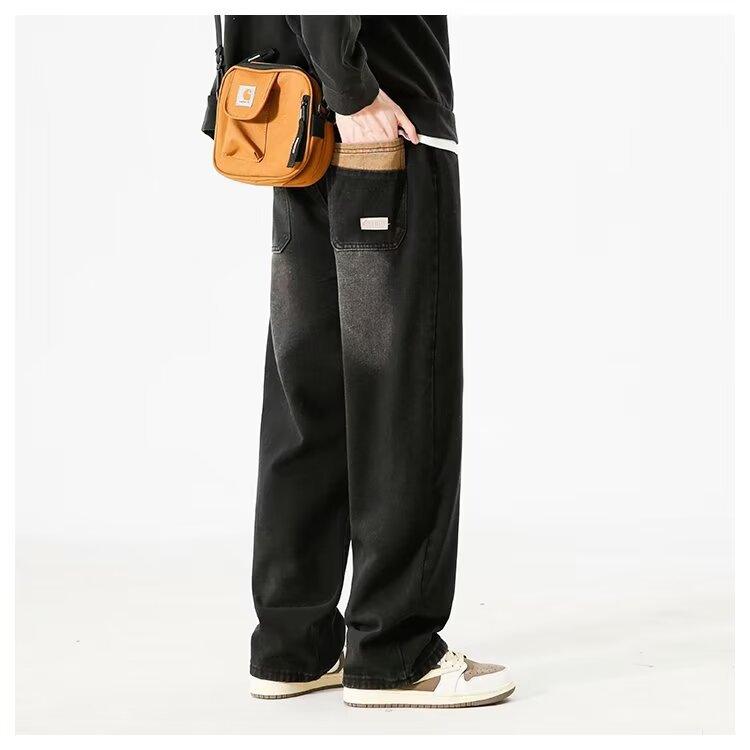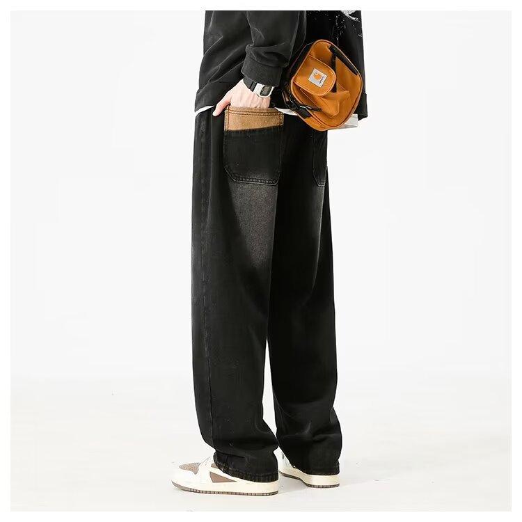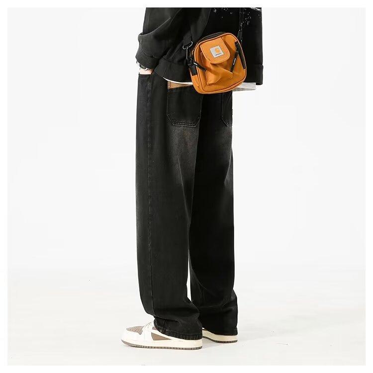 Pantalones vaqueros para hombre, estilo americano, holgados, de calle, talla grande, rectos, combinables, pantalones largos de pierna ancha para verano.