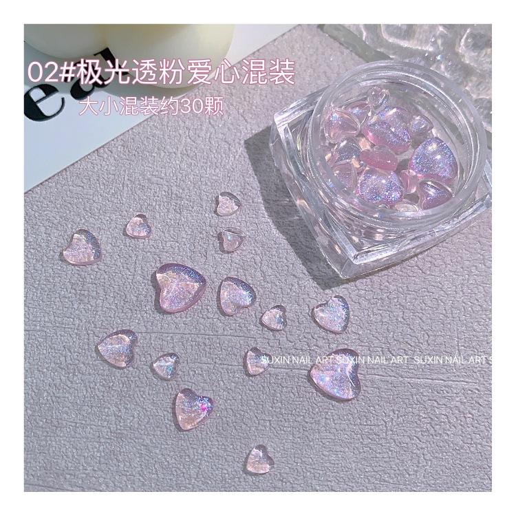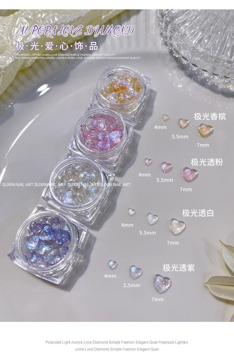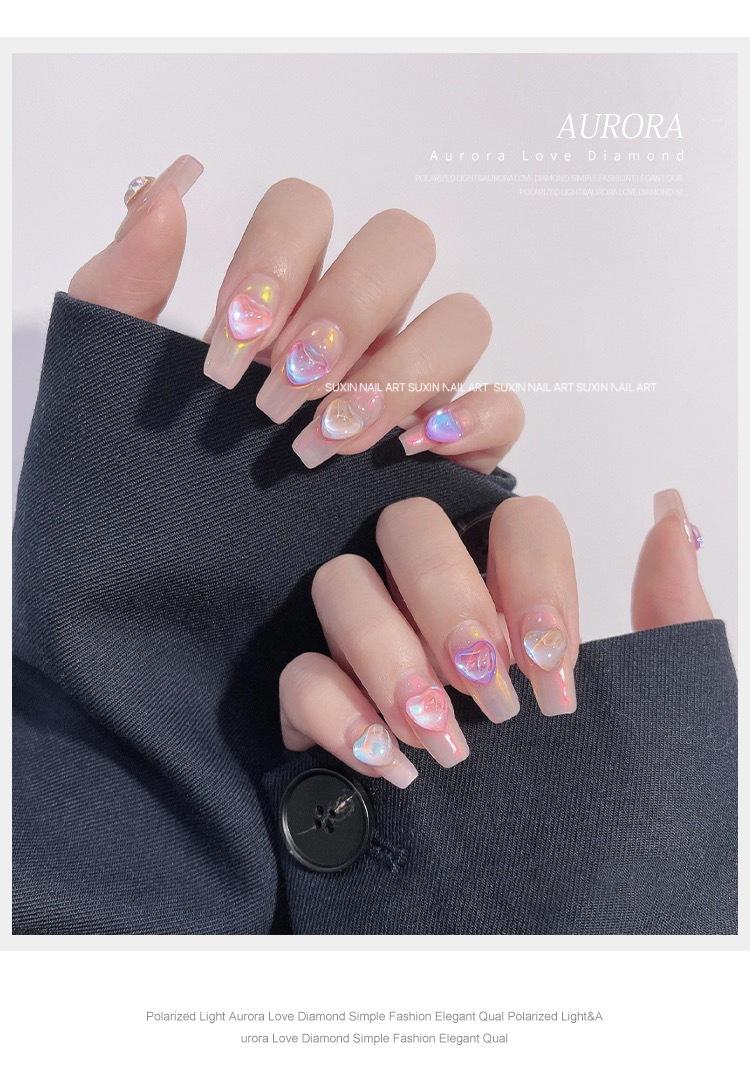 Joyería de uñas Aurora Love con diseño de celebridades de Internet, superbrillante, de fondo plano, polarizada, con colores mágicos, mezcla de melocotón y diamantes, decoración de uñas, nuevo estilo