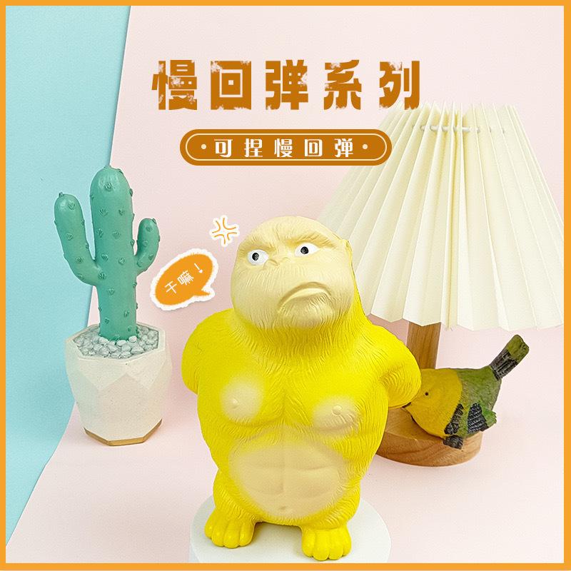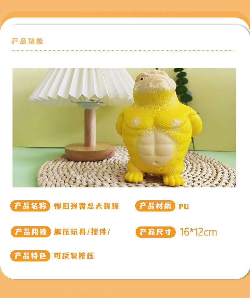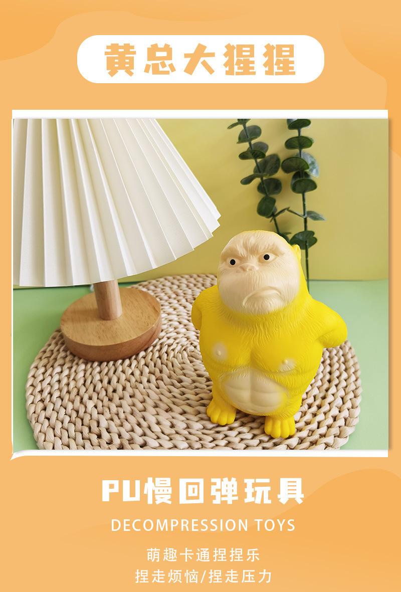 Juguete de descompresión de gorila amarillo caliente Tiktok, PU, rebote lento, pellizco, música, artefacto de descompresión, muñeca de decoración de escritorio