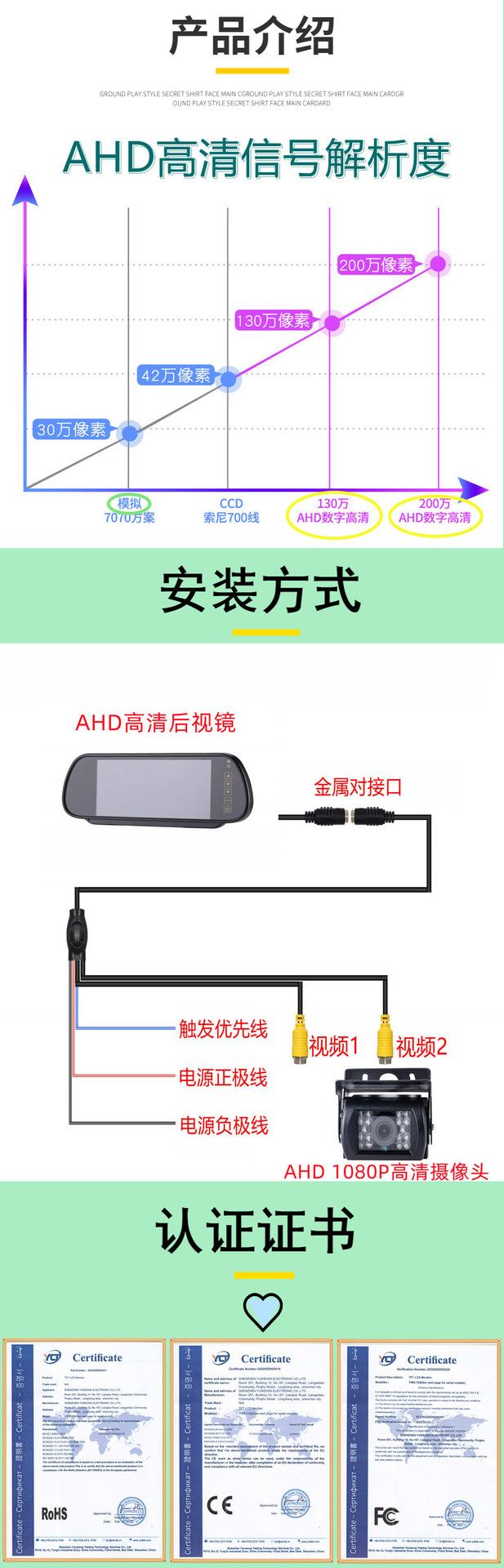 Parámetros del producto y descripción de la función del espejo retrovisor AHD de 7 pulgadas