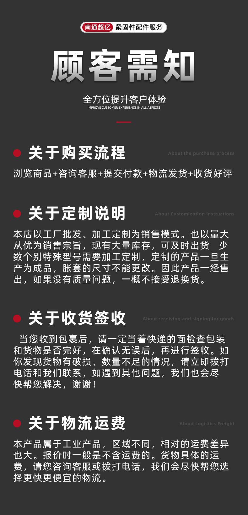 Nota: Debido al gran número de tamaños y materiales de los productos, no se muestran uno por uno en el enlace. Consulte al servicio de atención al cliente para una cotización por separado~ Las piezas no estándar admiten la personalización según dibujos y muestras. Bienvenido a llamar para consulta... Gracias por visitar nuestra tienda~