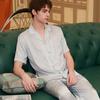 Pijamas finos de seda para hombre, de manga corta, para primavera, verano y otoño, informales, para el hogar, cárdigan, traje de seda helada.