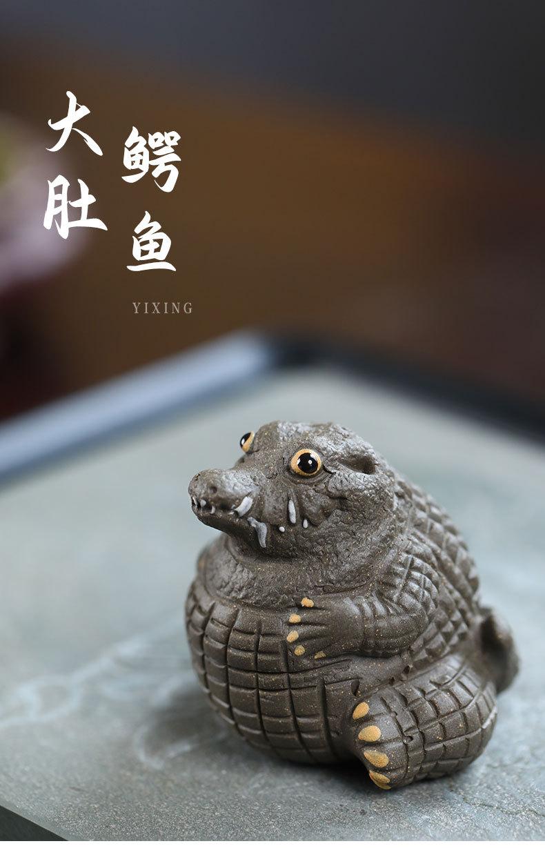 Decoración de mesa de té Yixing, venta al por mayor, hecha a mano, pura, gran barriga de cocodrilo, juego de té chino creativo, boutique, mineral crudo, arena púrpura, mascota de té