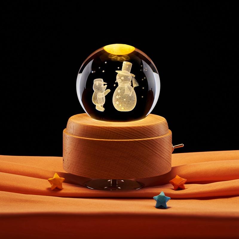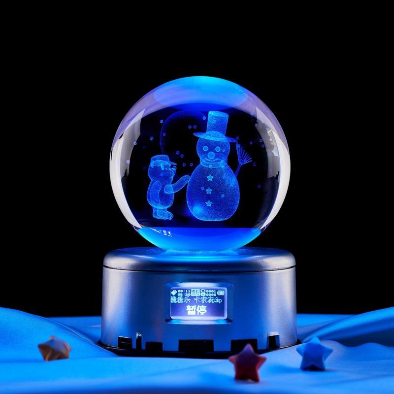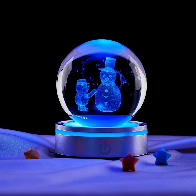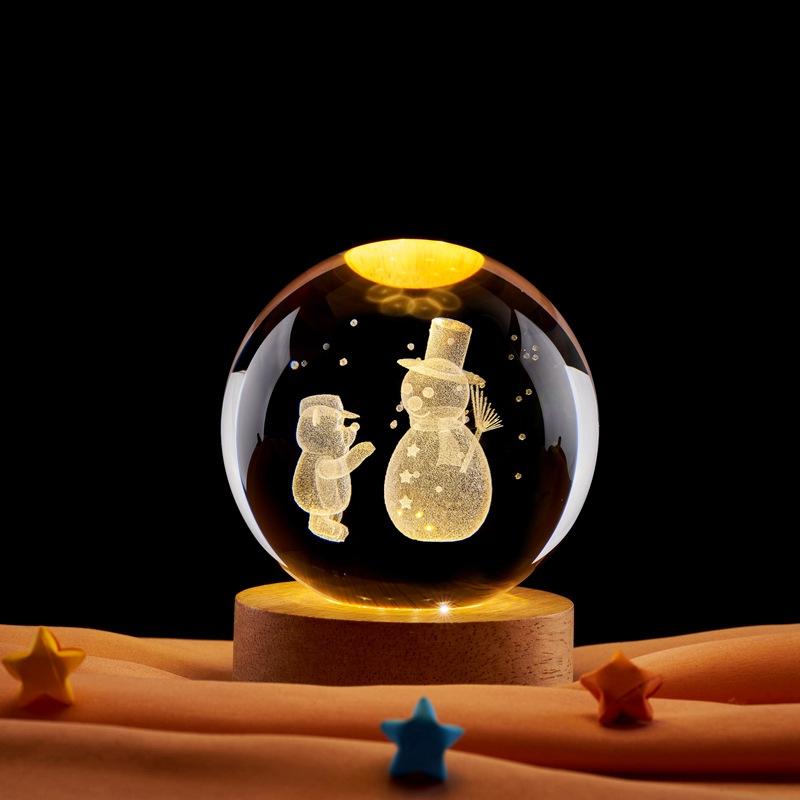 Venta al por mayor transfronteriza Muñeco de nieve navideño 3D tridimensional grabado láser bola de cristal decoración de cabecera adornos de luz nocturna estrellada