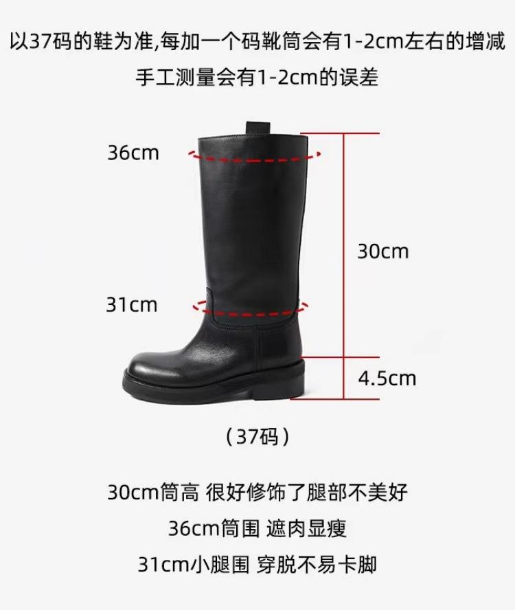 La suela de 4.5 cm de grosor y el diseño bien proporcionado de la caña de la bota hacen que las piernas parezcan más delgadas.