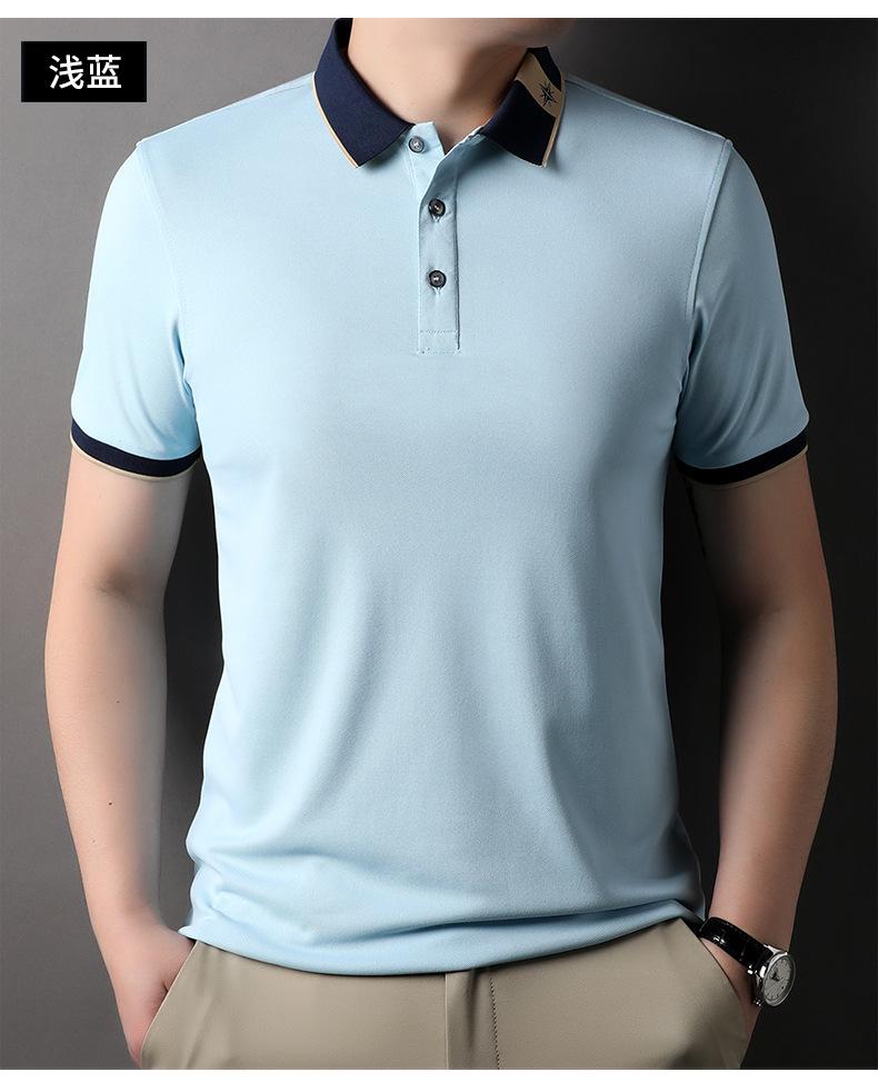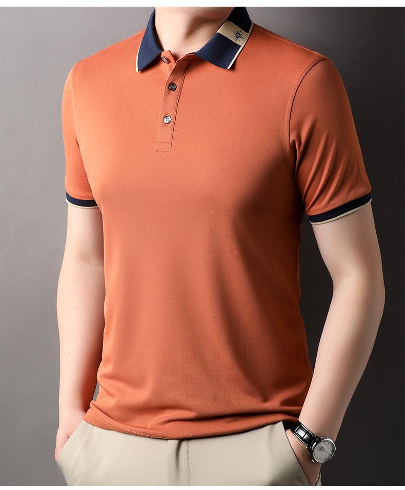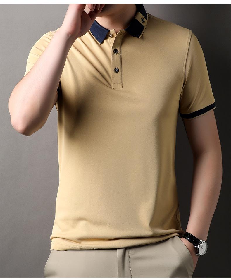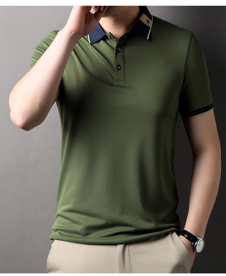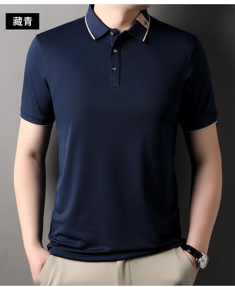 Polo de Hombre 2024 Verano Nuevo Color Sólido Delgado Negocios Transpirable Cuello Vuelto Manga Corta Camiseta para Hombre