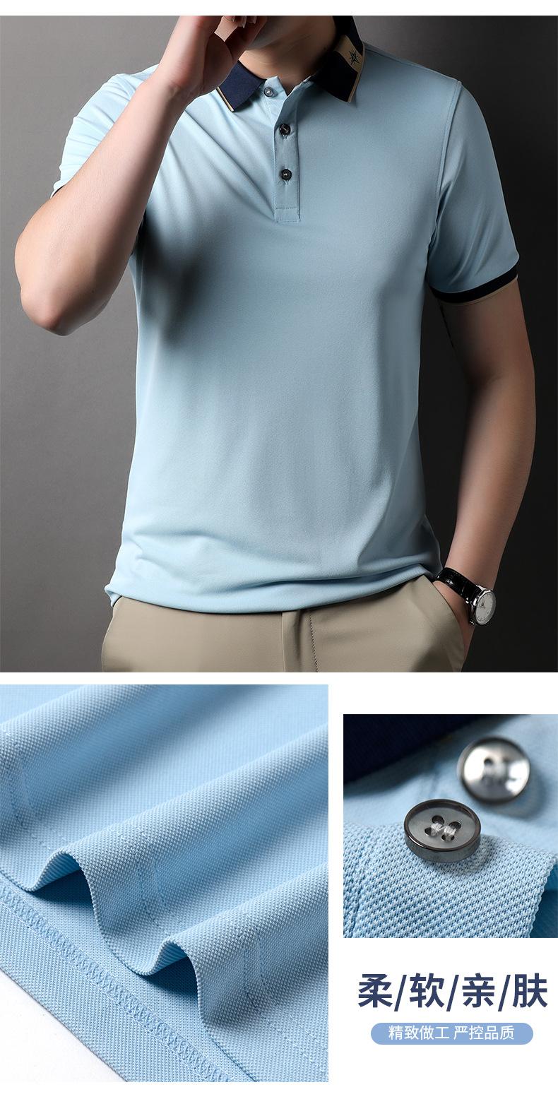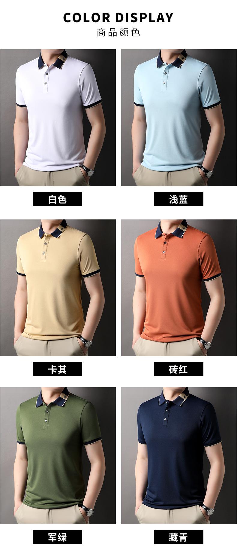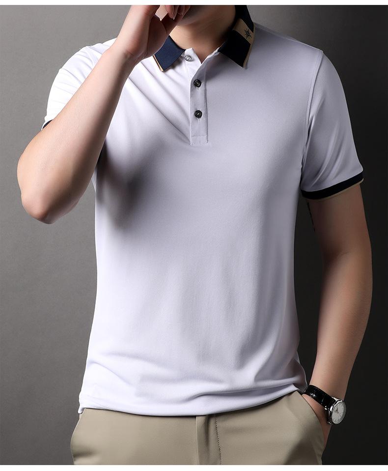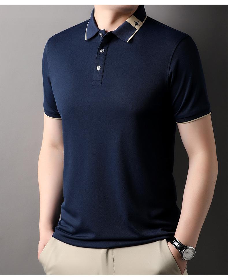Polo de Hombre 2024 Verano Nuevo Color Sólido Delgado Negocios Transpirable Cuello Vuelto Manga Corta Camiseta para Hombre