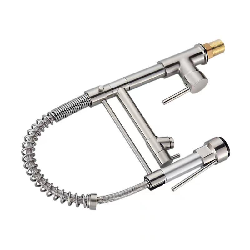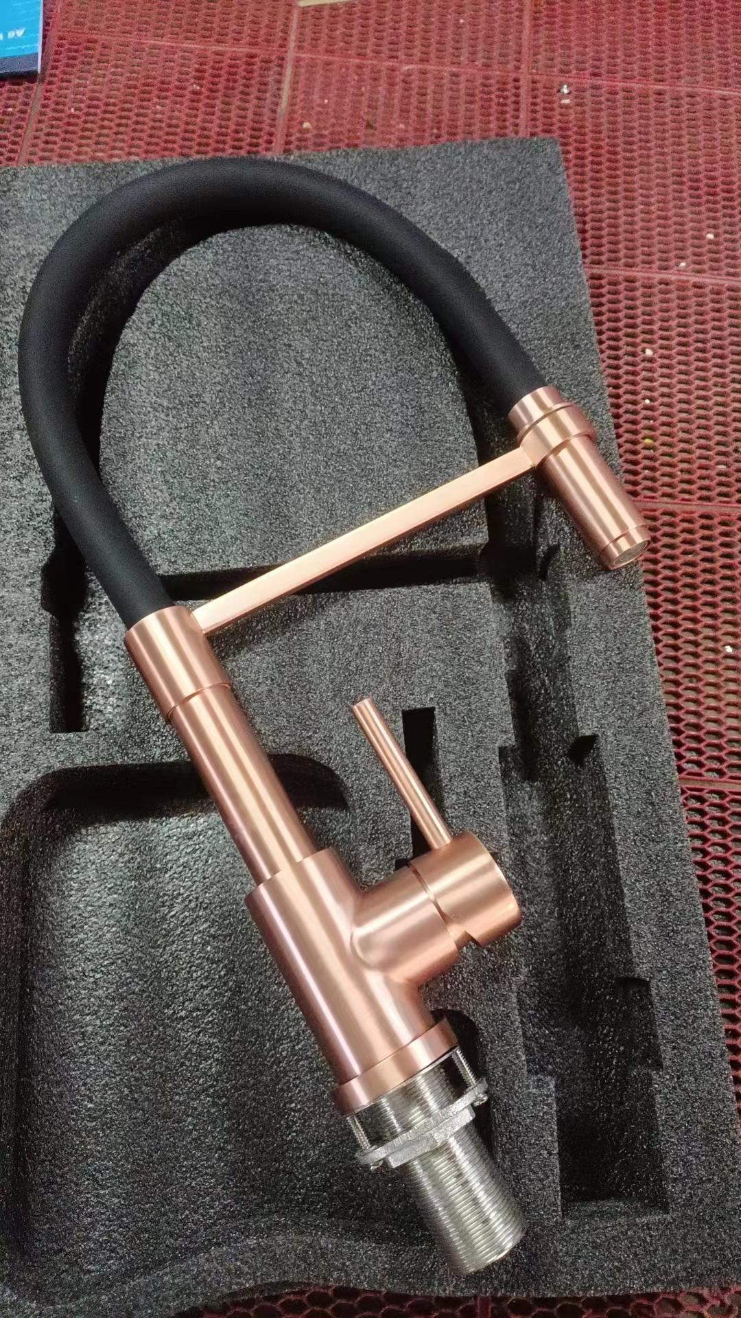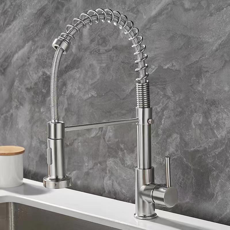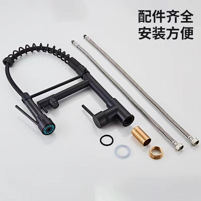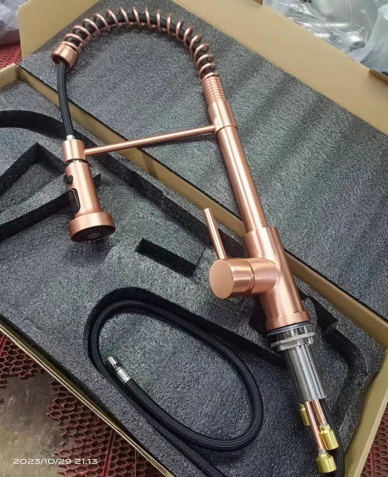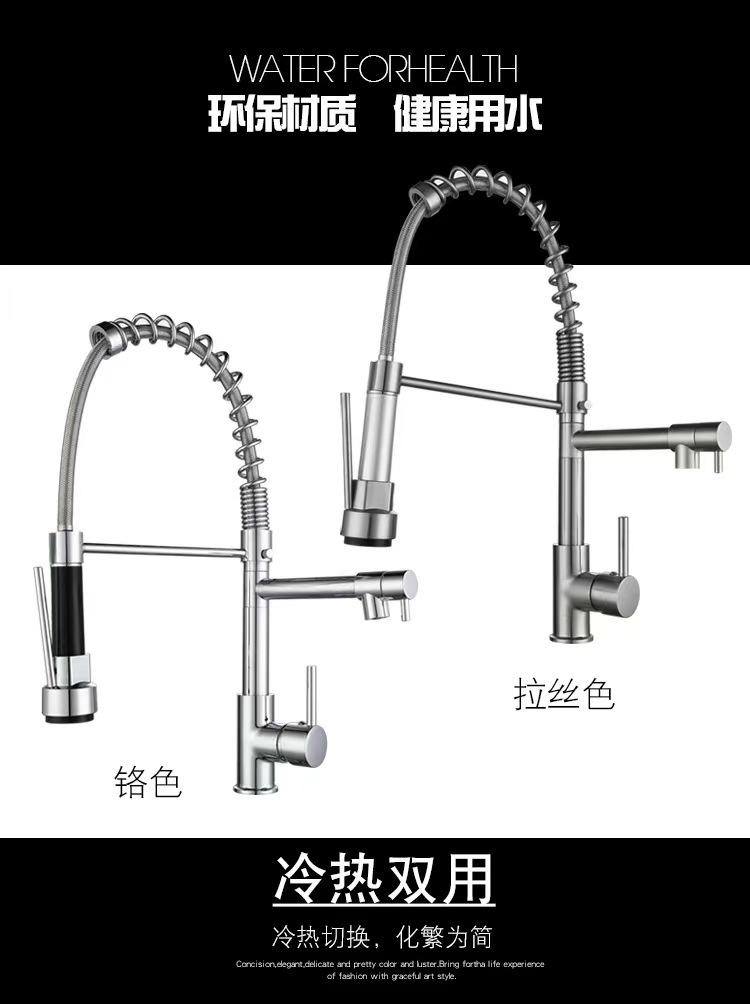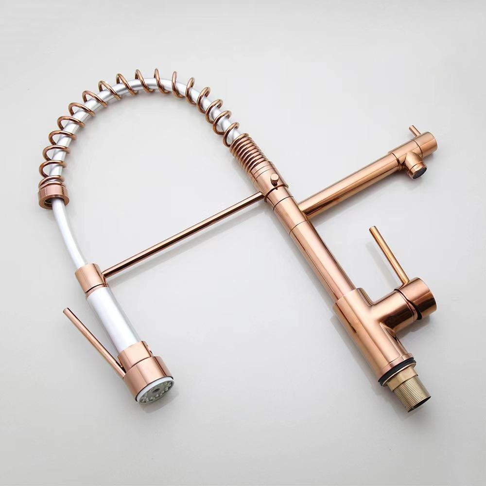 Grifo de cocina extraíble Cross-border 304, con fregadero de agua fría y caliente, grifo giratorio de silicona con resorte de bronce rojo.
