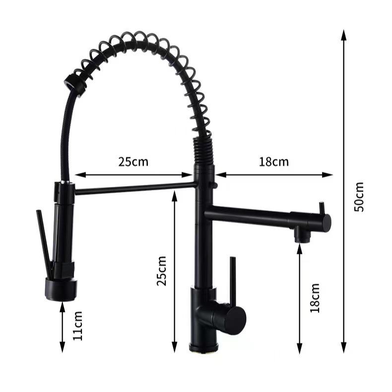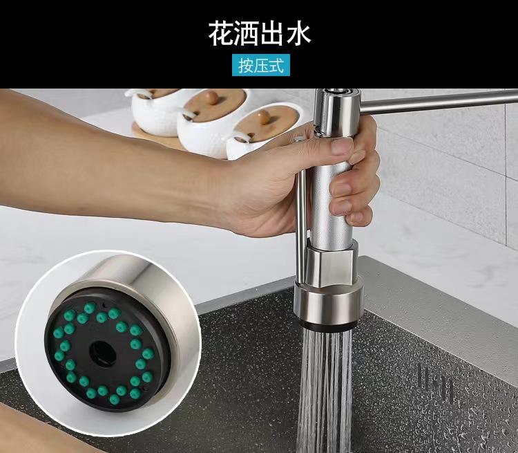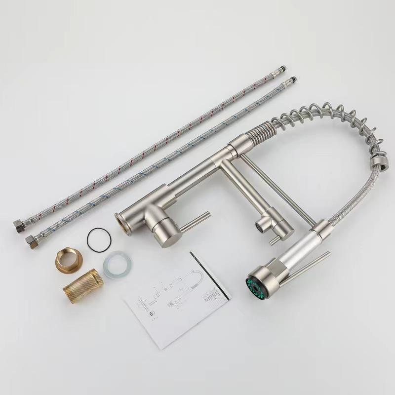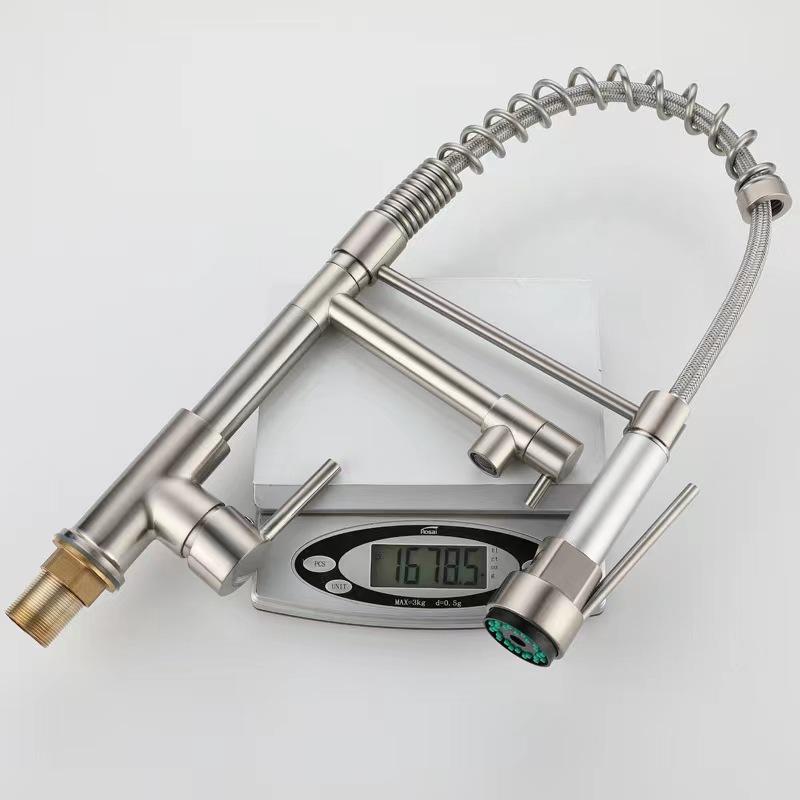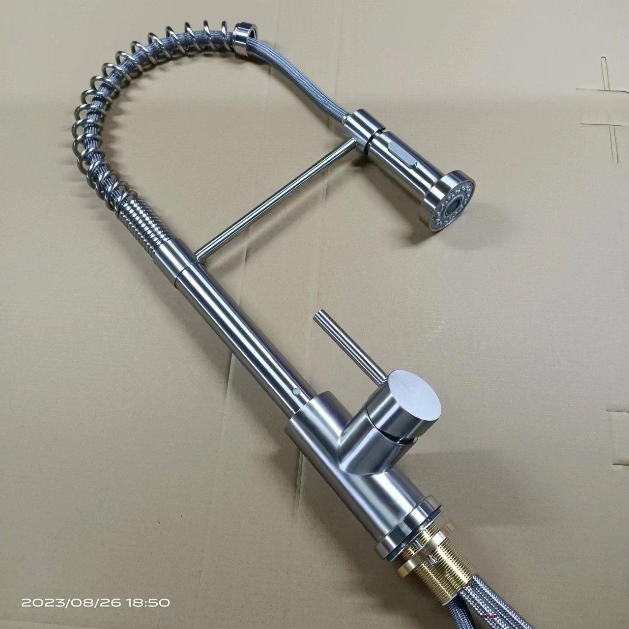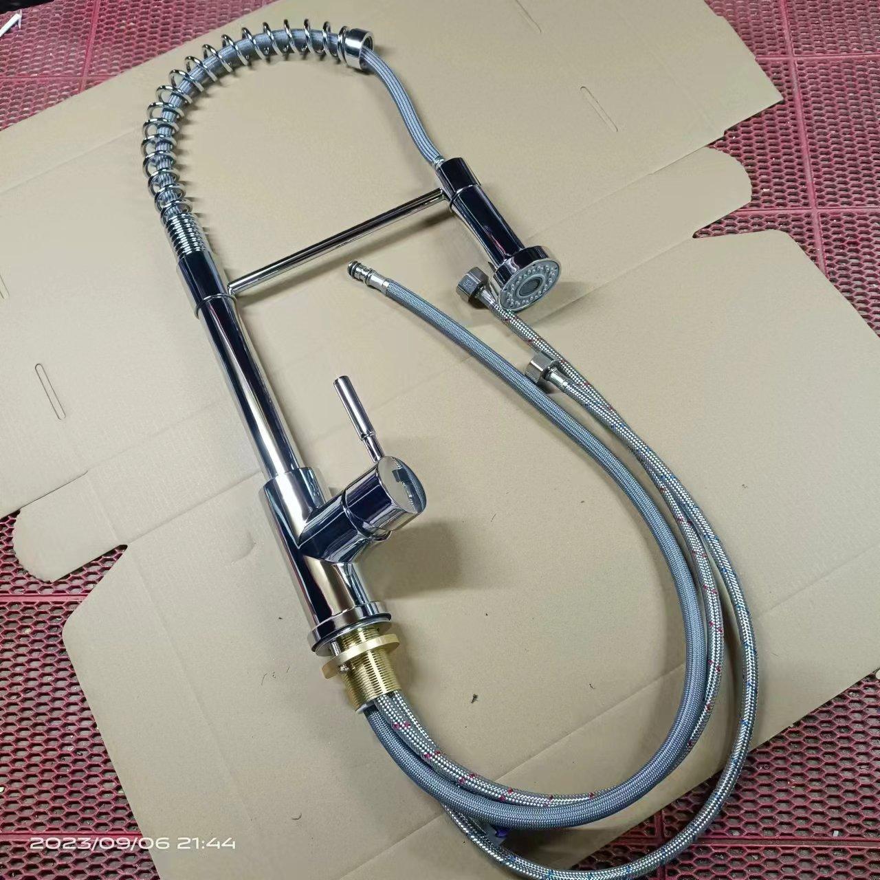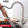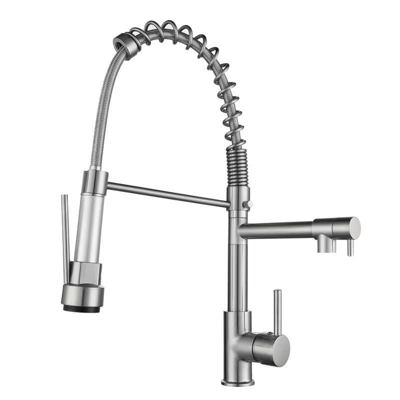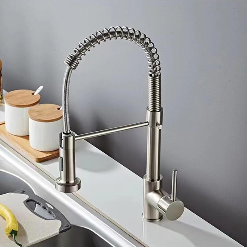 Grifo de cocina extraíble Cross-border 304, con fregadero de agua fría y caliente, grifo giratorio de silicona con resorte de bronce rojo.