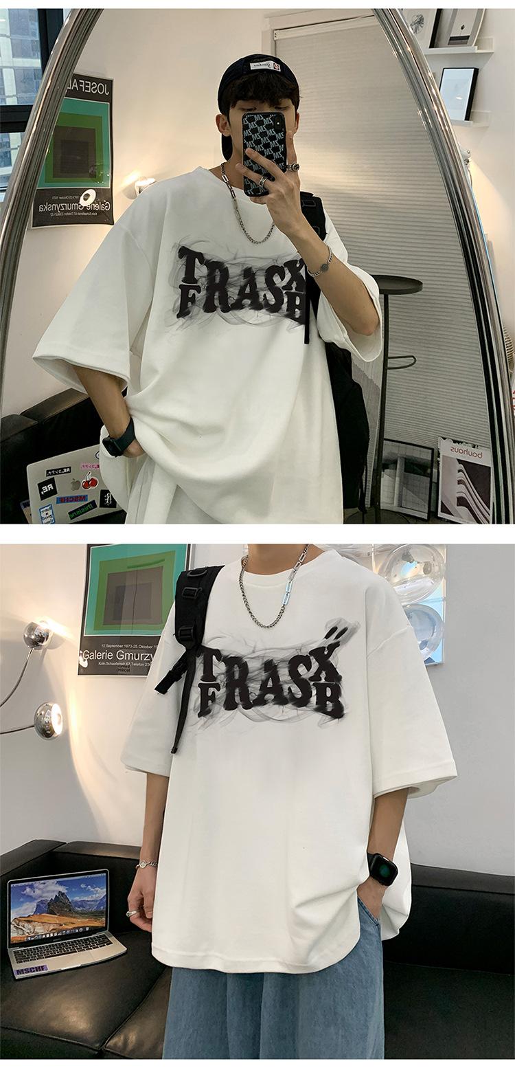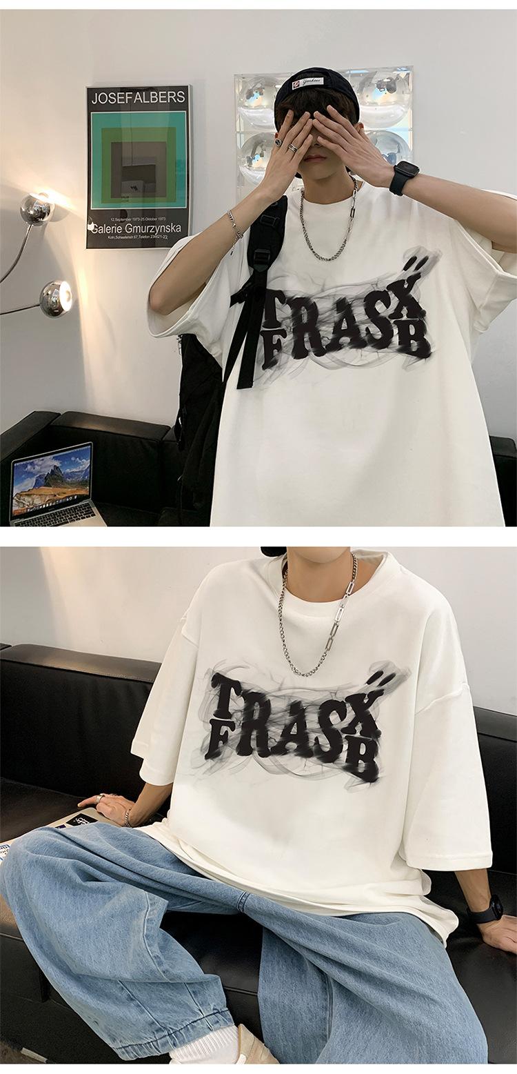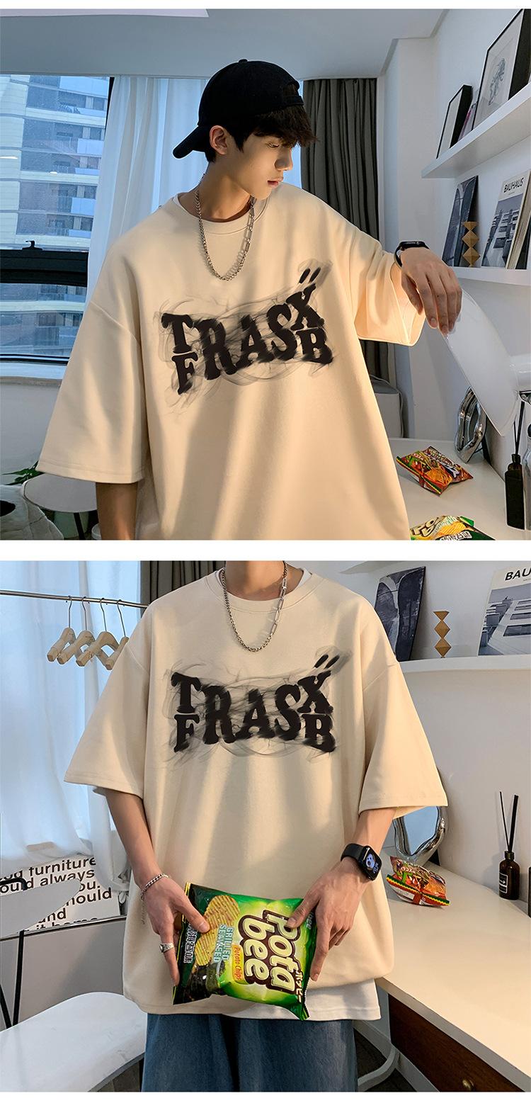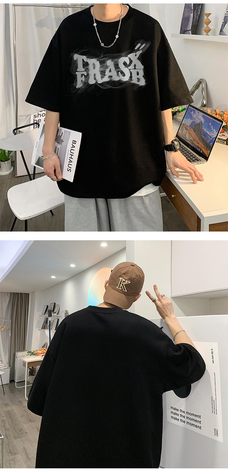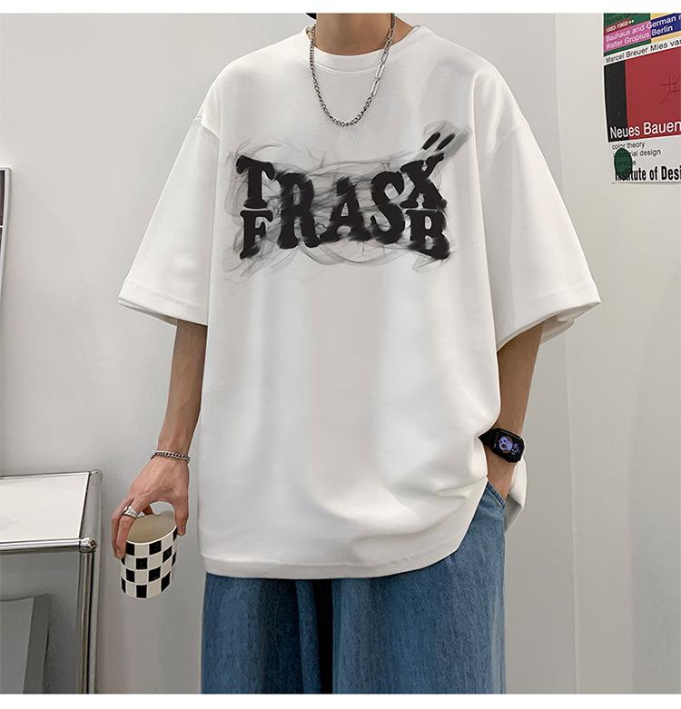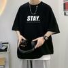 Camisetas de Verano de Manga Corta para Hombre, Holgadas, Modernas, con Estampado de Letras de Marca, Cuello Redondo, Manga Media, Camisetas Casuales Americanas para Hombre