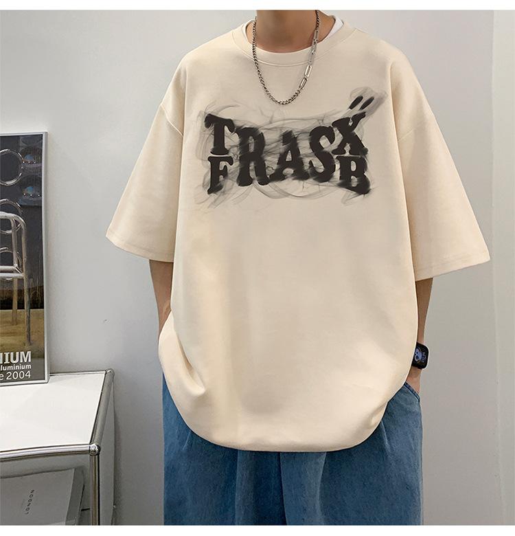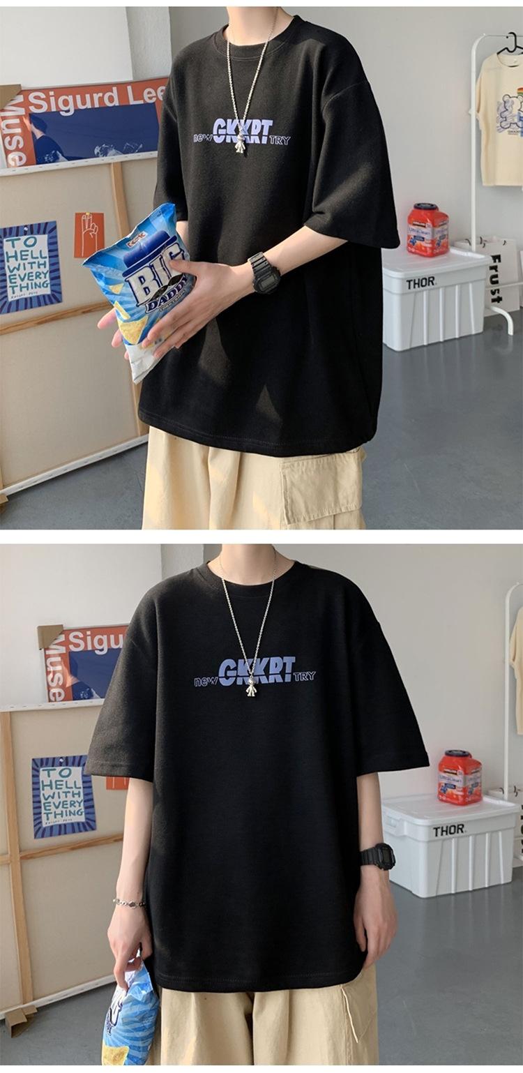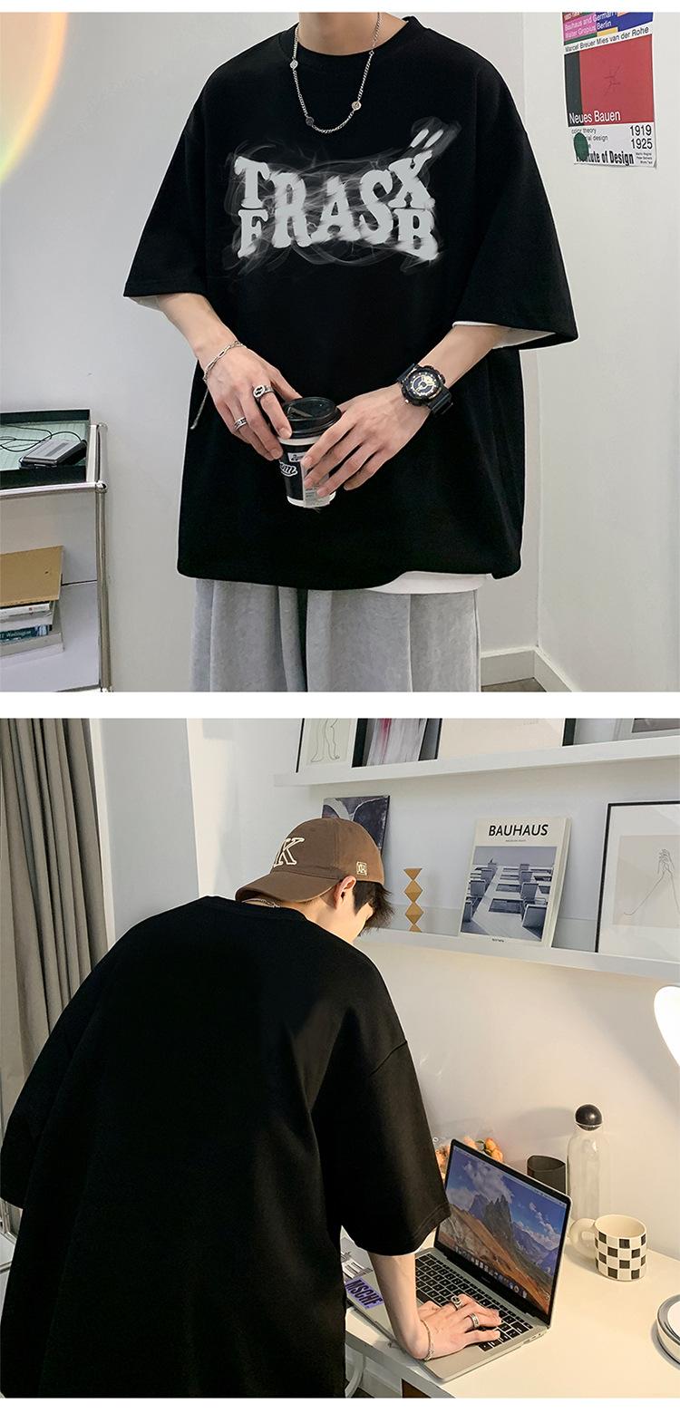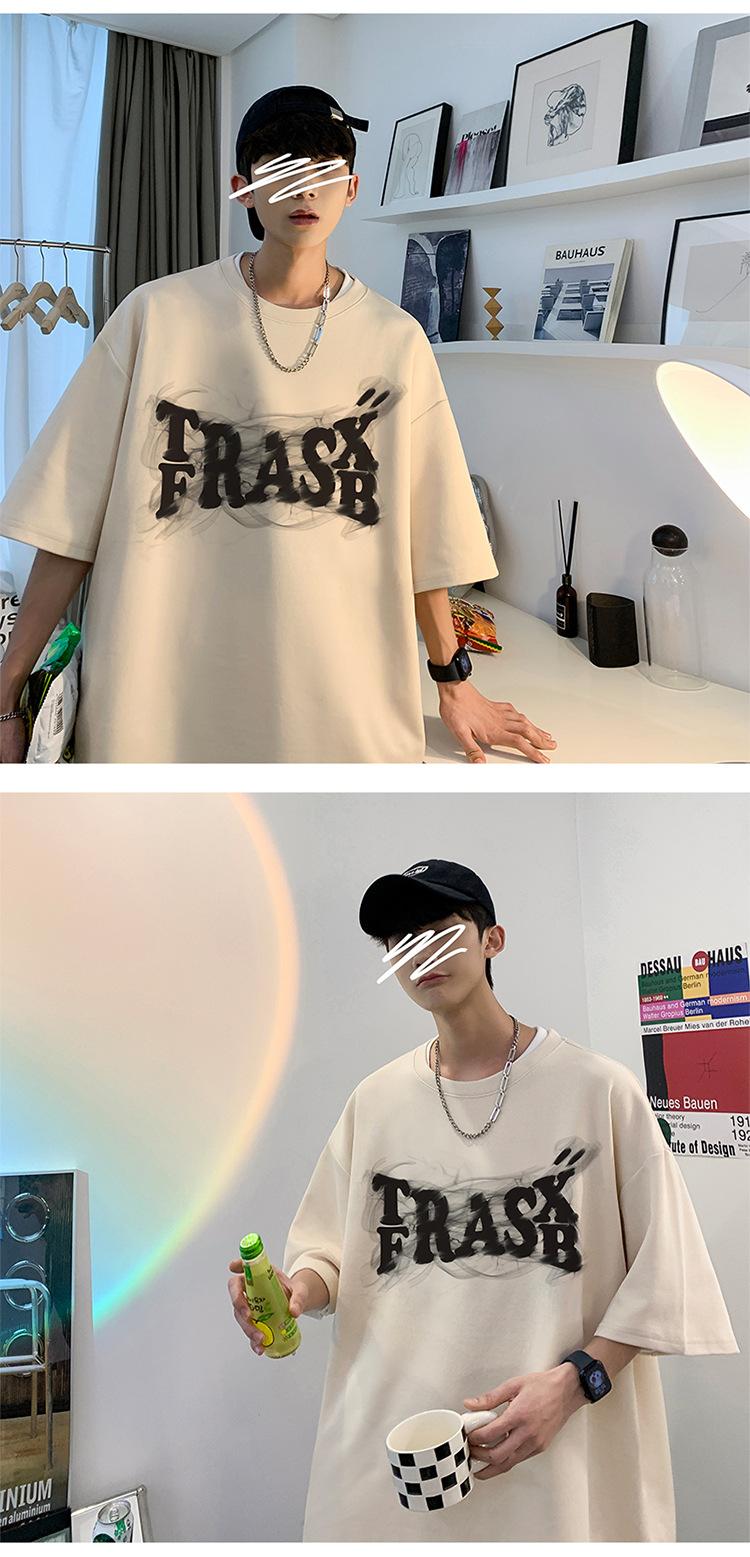 Camisetas de Verano de Manga Corta para Hombre, Holgadas, Modernas, con Estampado de Letras de Marca, Cuello Redondo, Manga Media, Camisetas Casuales Americanas para Hombre