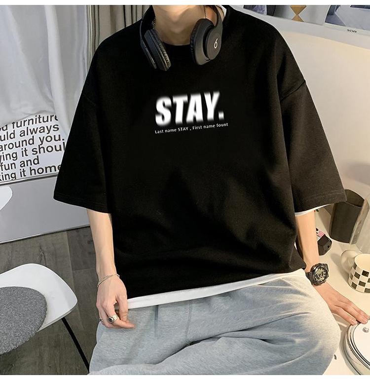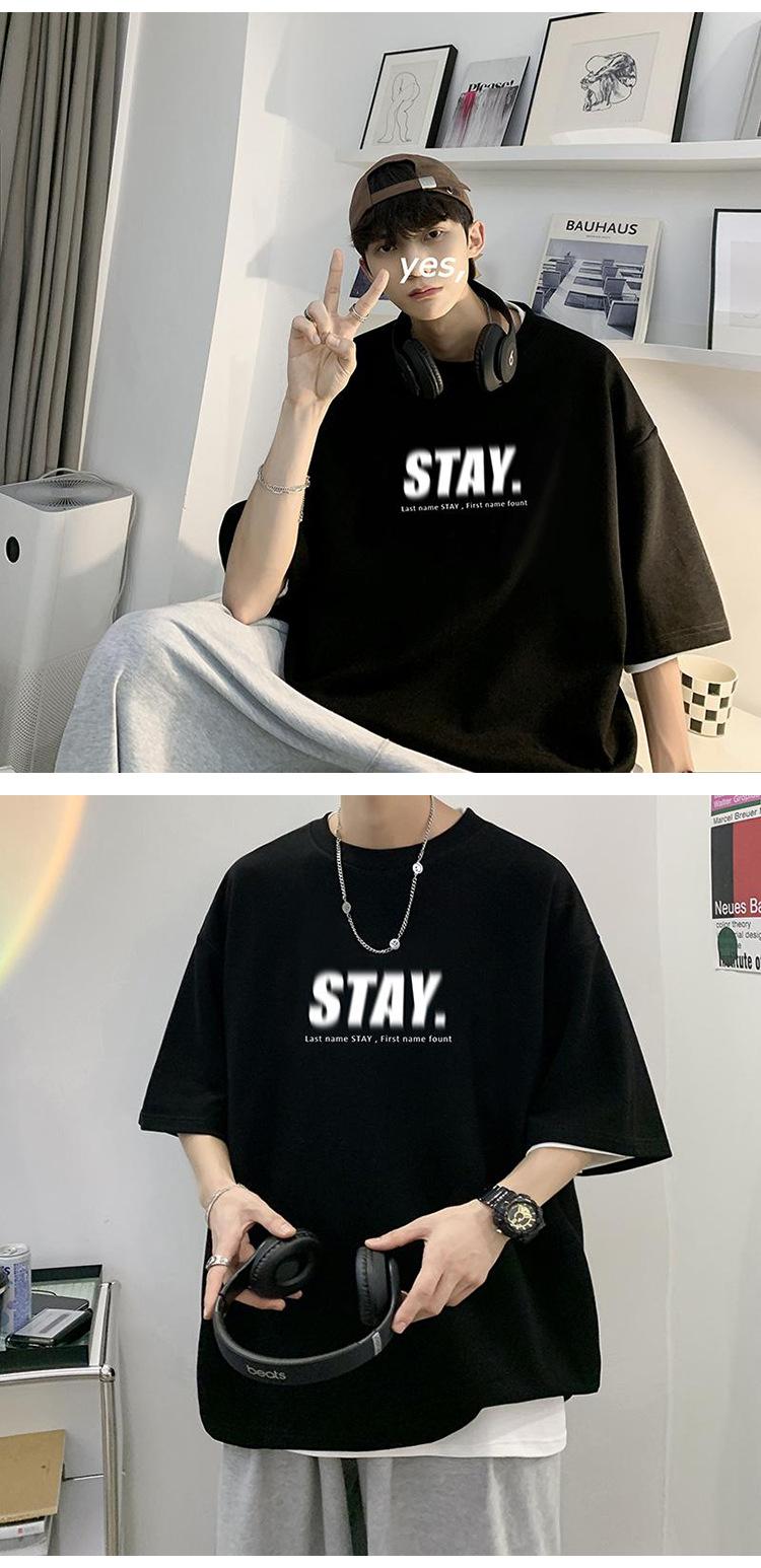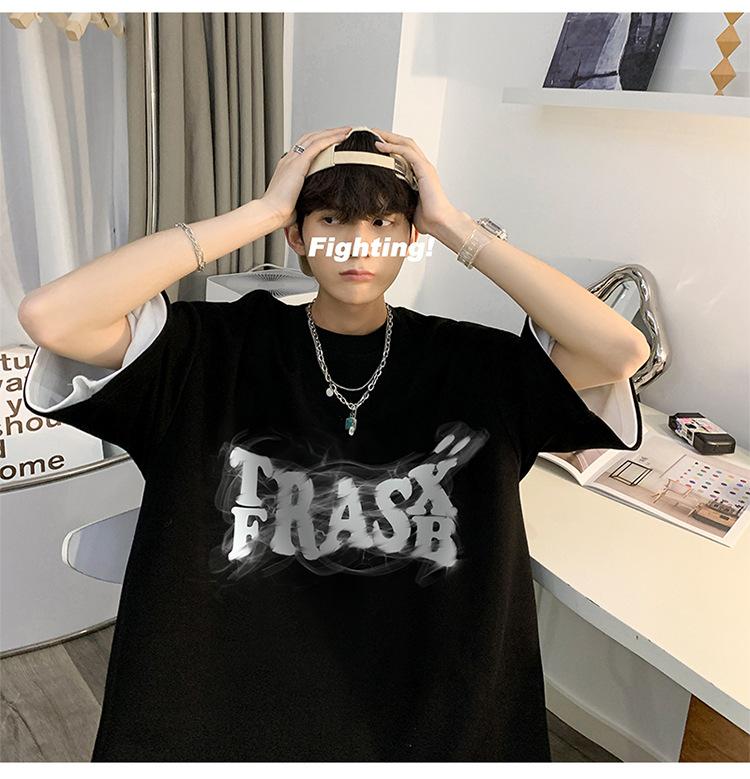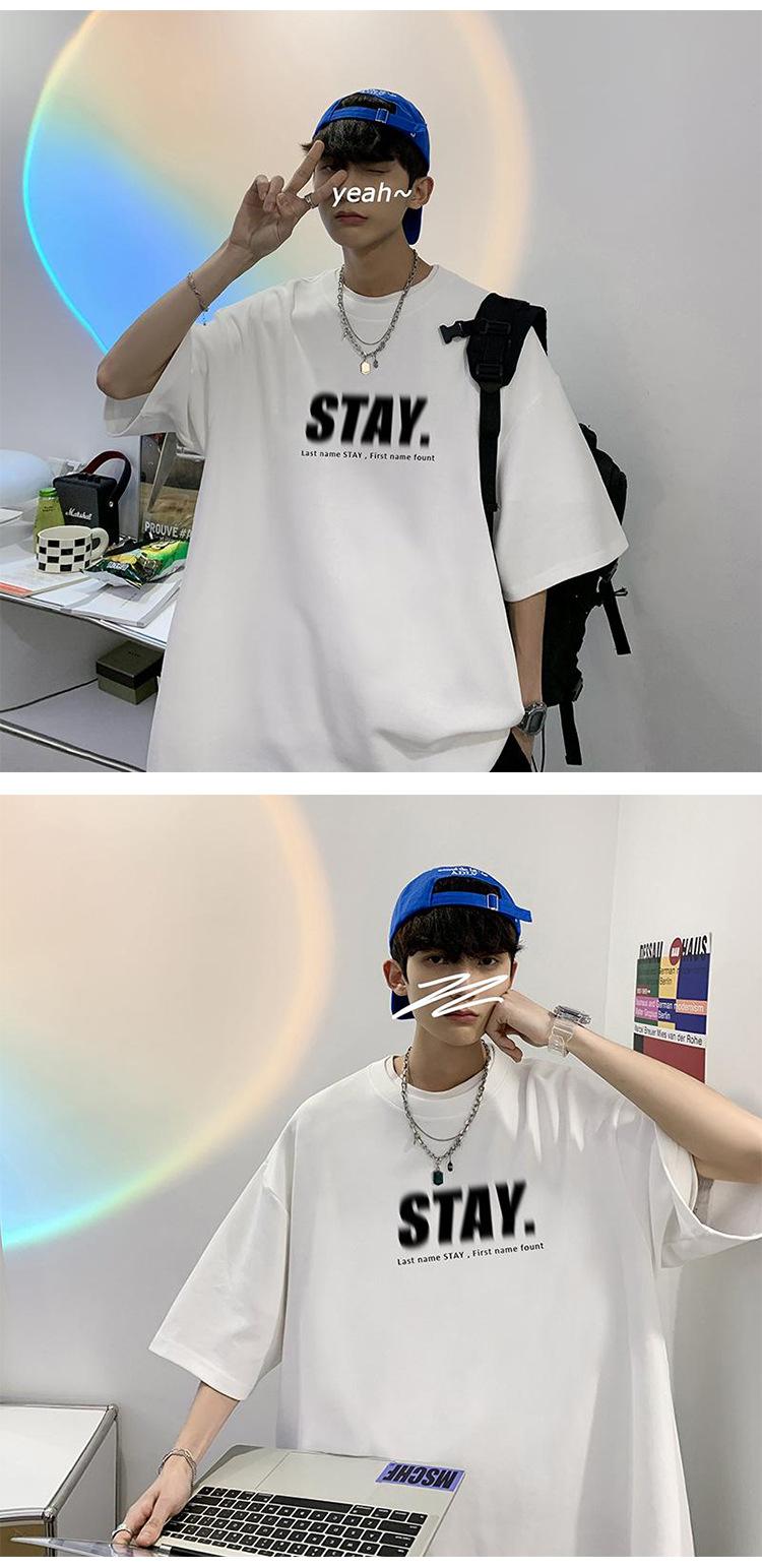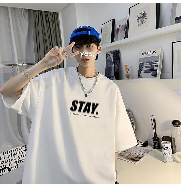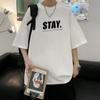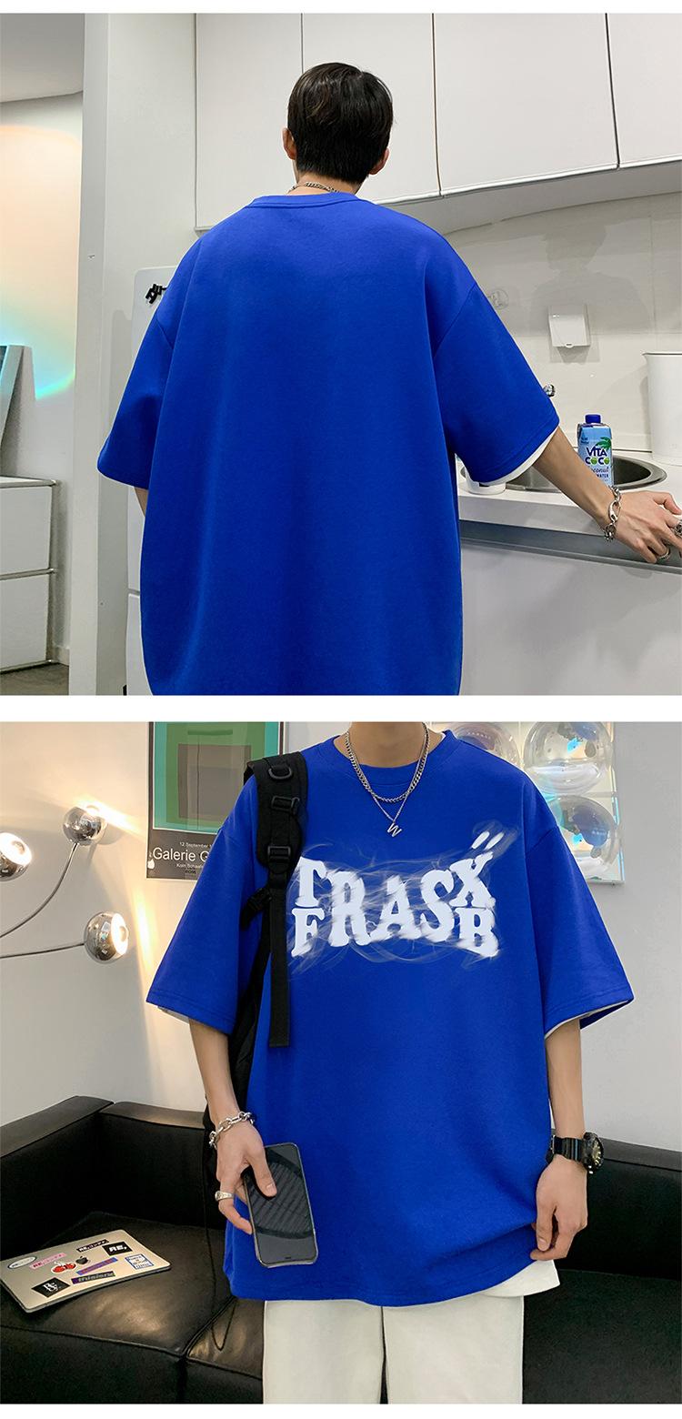 Camisetas de Verano de Manga Corta para Hombre, Holgadas, Modernas, con Estampado de Letras de Marca, Cuello Redondo, Manga Media, Camisetas Casuales Americanas para Hombre