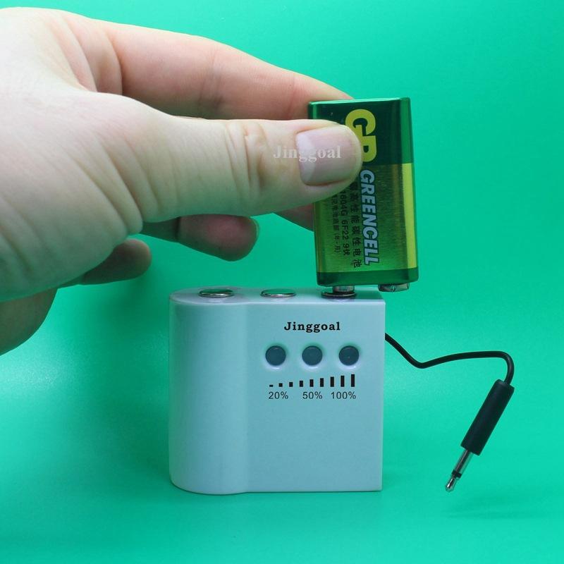 2. Conecte el polo positivo de la batería al terminal metálico en la parte superior del producto. El lado izquierdo es 3V, el del medio es 1.5V, y el lado derecho es compartido por 9V y 12V.