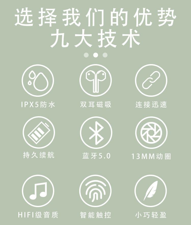 Memoria: 32GTiempo de juego: 5 horasTiempo en espera: 2000 horas Tiempo de carga: 1 hora para los audífonos, 3 horas para el estuche de carga Altavoz: F13.2 altavoz de anillo de cobre real Capacidad de la batería: 35 mAh para los auriculares, 1200 mAh para el estuche de carga Punto de venta: con auriculares Bluetooth, MP3 para exteriores, compatible con Android y Apple |