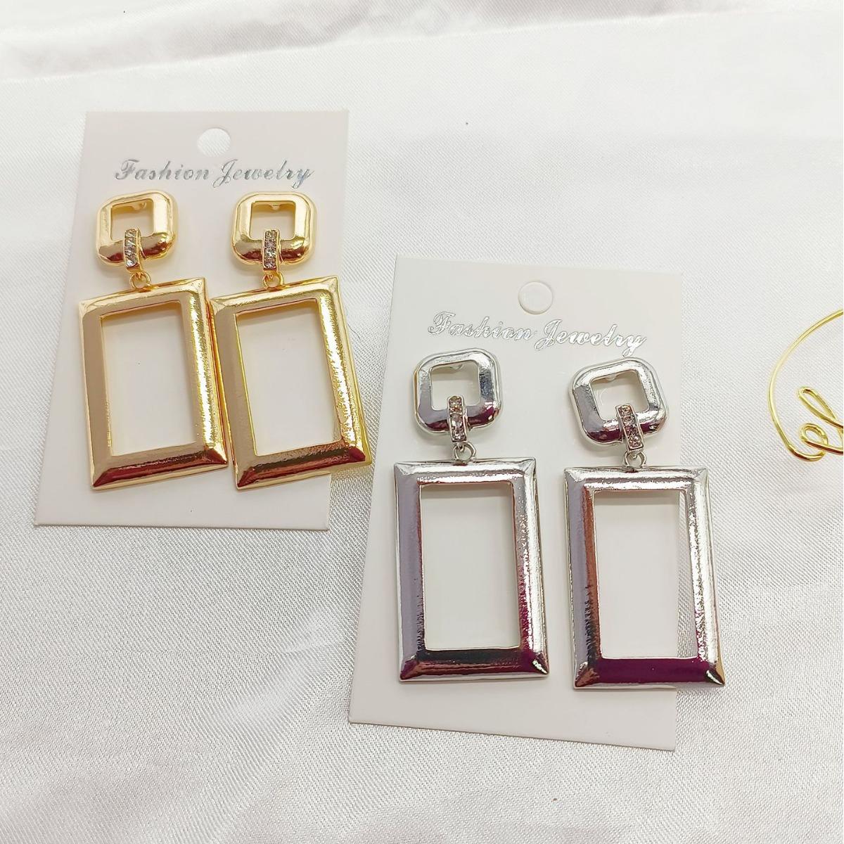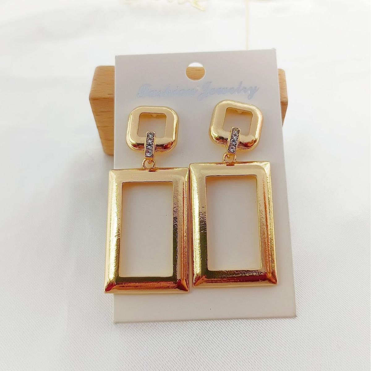 Aretes de Metal Retro de Moda Europea y Americana, Aretes de Botón, Aretes Rectangulares Elegantes y Simples, Diseño Geométrico de Lujo Ligero
