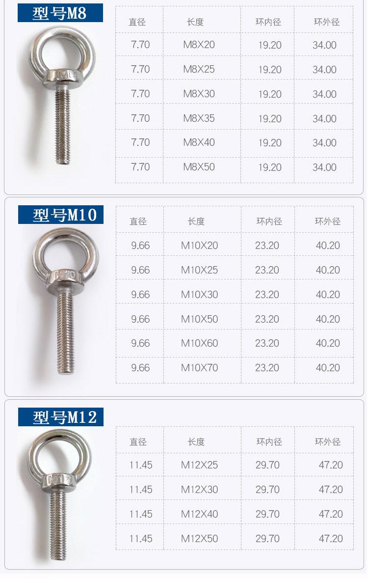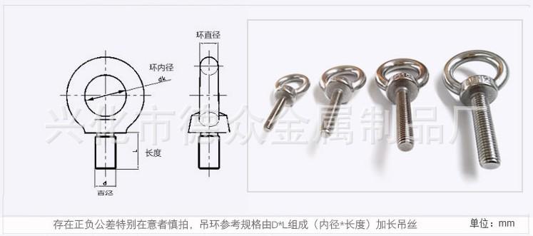 Tuerca de ojo de acero inoxidable 304, tornillo, perno, tornillo de ojo, tuerca M3M4M5M6M8M10-M24