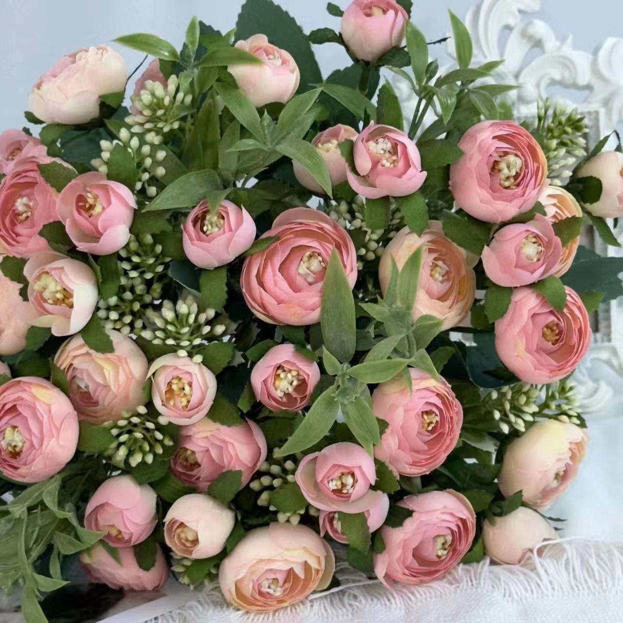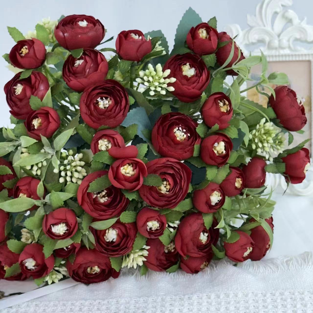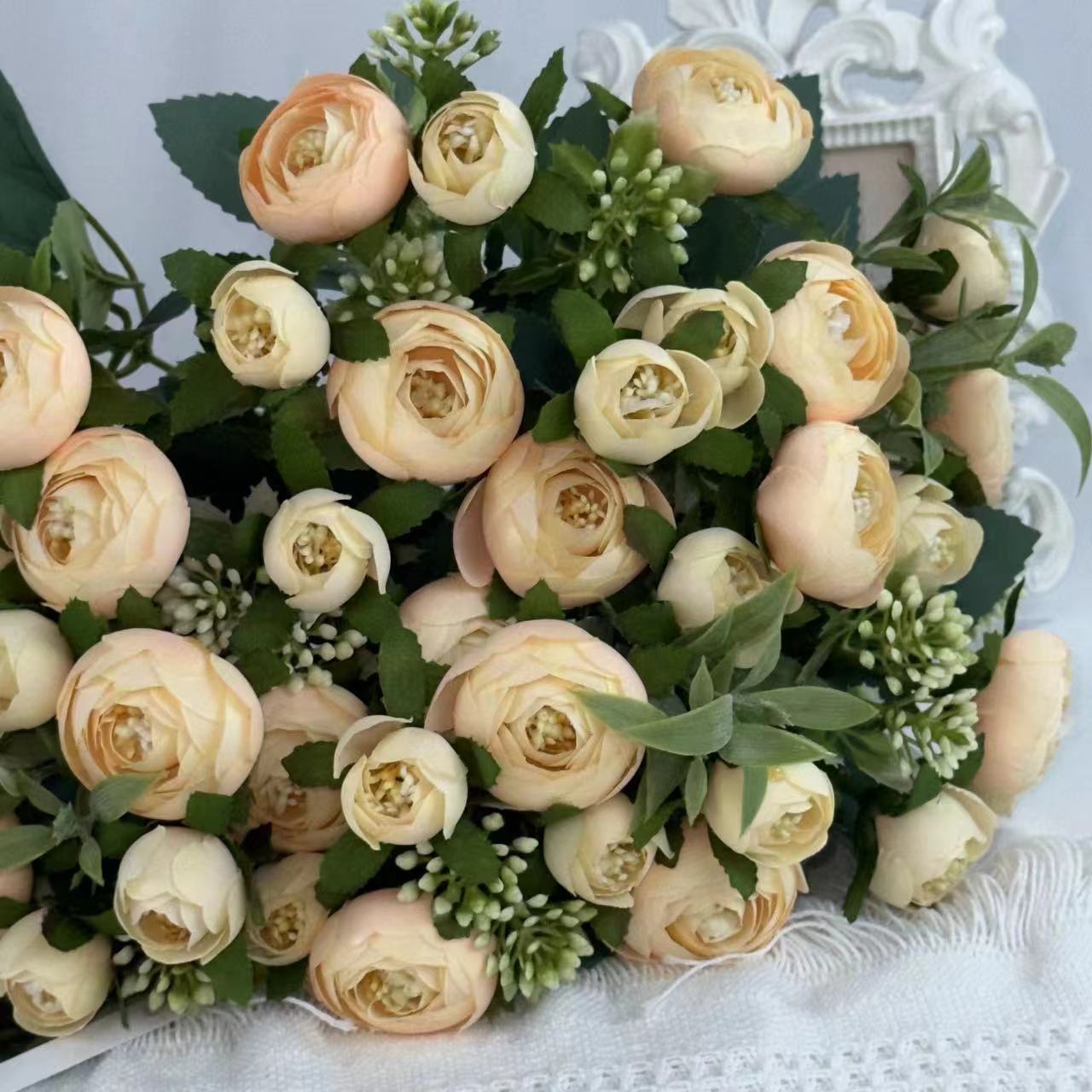 Nueva simulación de comercio exterior transfronterizo al por mayor, ramo de boda, flores falsas, flores, camelia, rosas, adornos, flores pequeñas