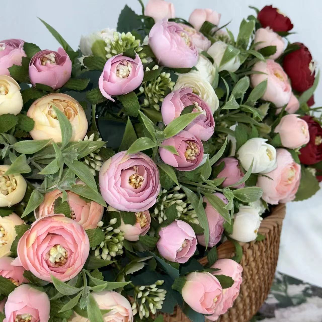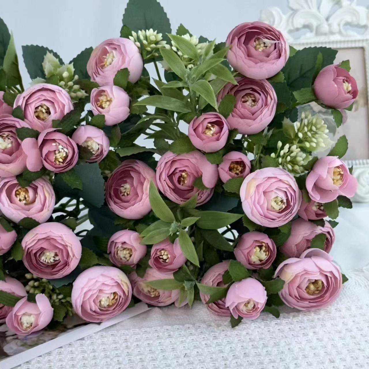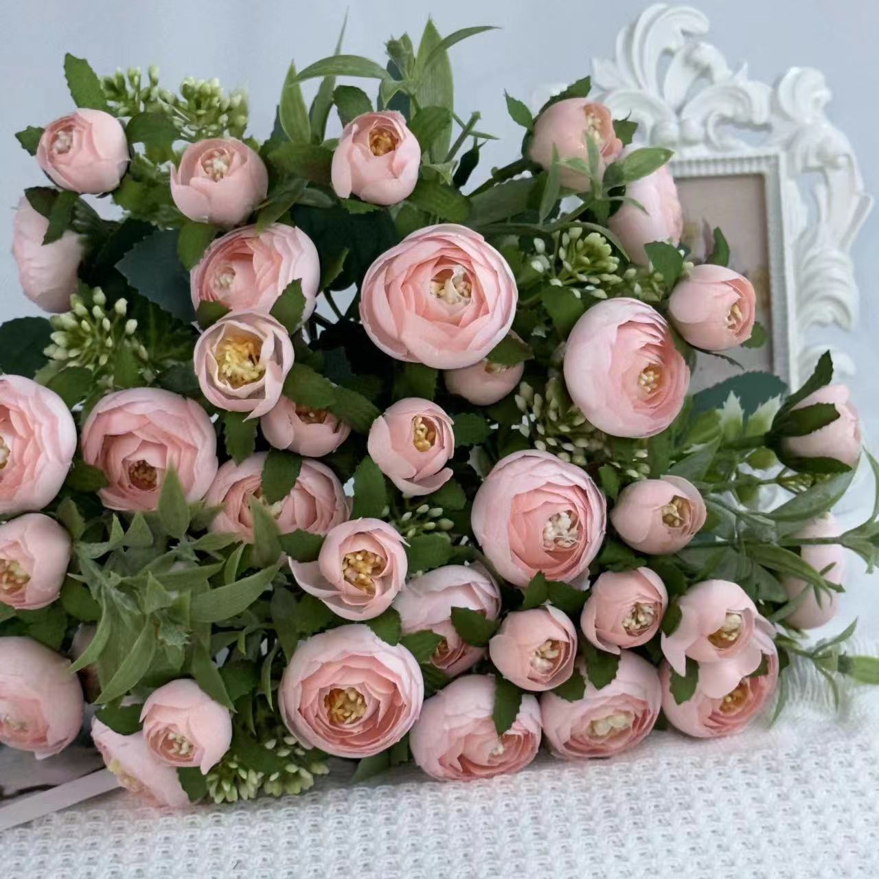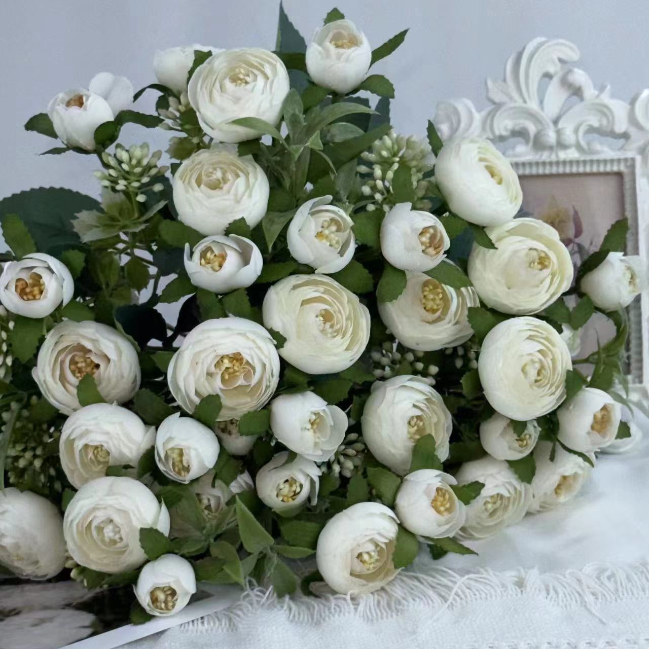Nueva simulación de comercio exterior transfronterizo al por mayor, ramo de boda, flores falsas, flores, camelia, rosas, adornos, flores pequeñas