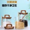 Frasco de vidrio transparente sellado con tapa, frasco de vidrio con tapa de madera de acacia, frasco de almacenamiento de dulces al vacío, botella de vidrio