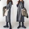 Vestido de lana gris con cuello alto y flores pequeñas de moda otoño-invierno 2023