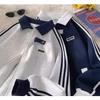 Chaqueta nueva de 2023 para hombre, estilo americano, retro, primavera y otoño, con capucha, suéter de moda, abrigo holgado informal con costuras de dos colores