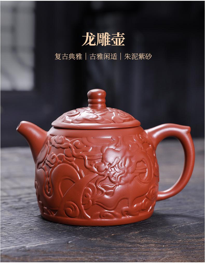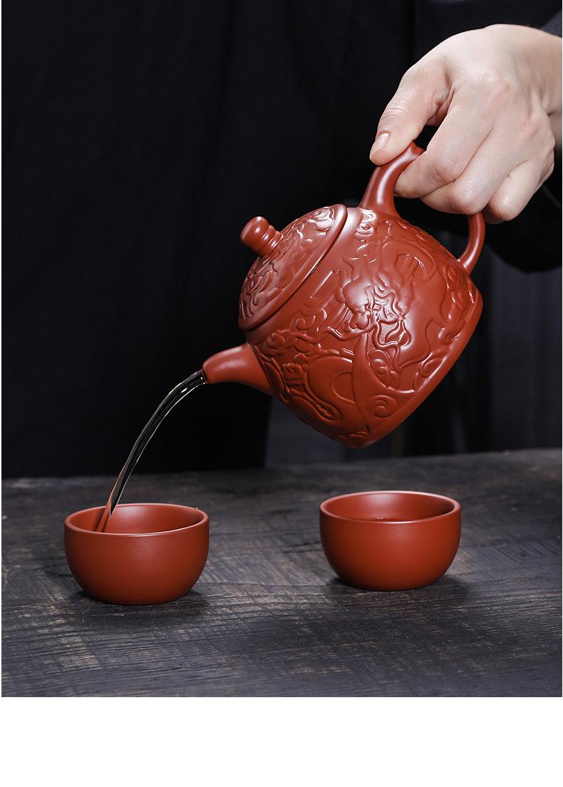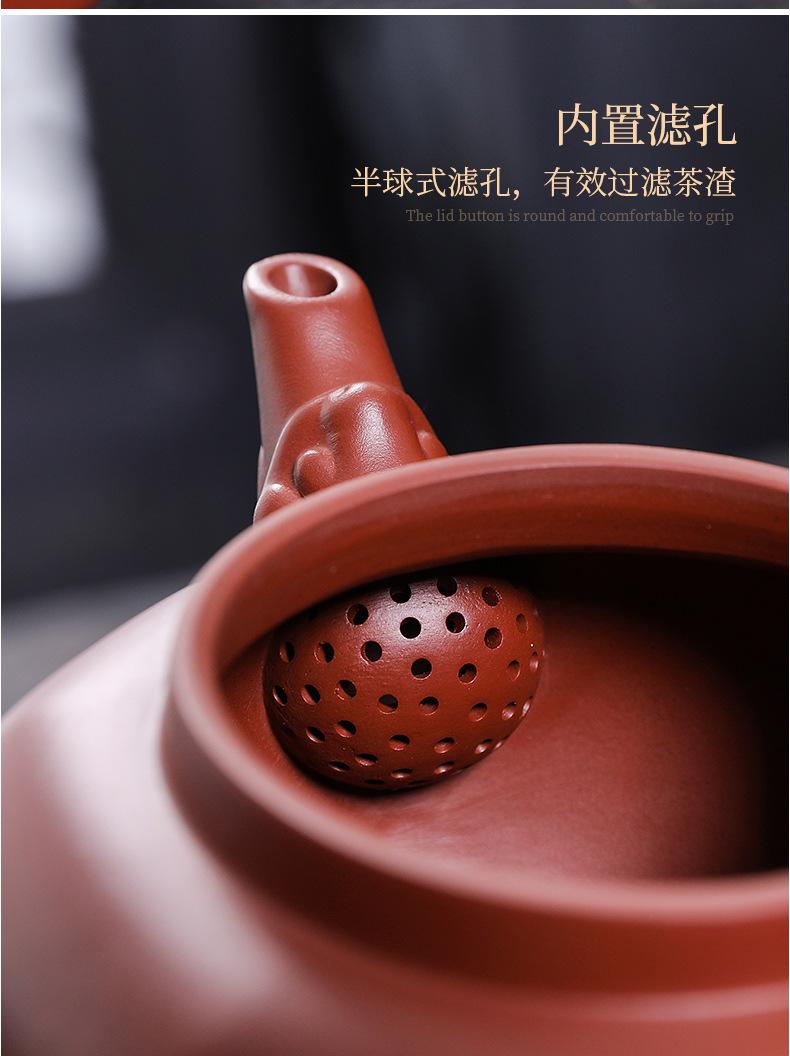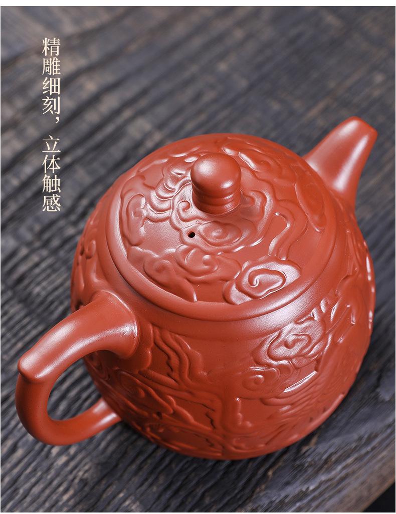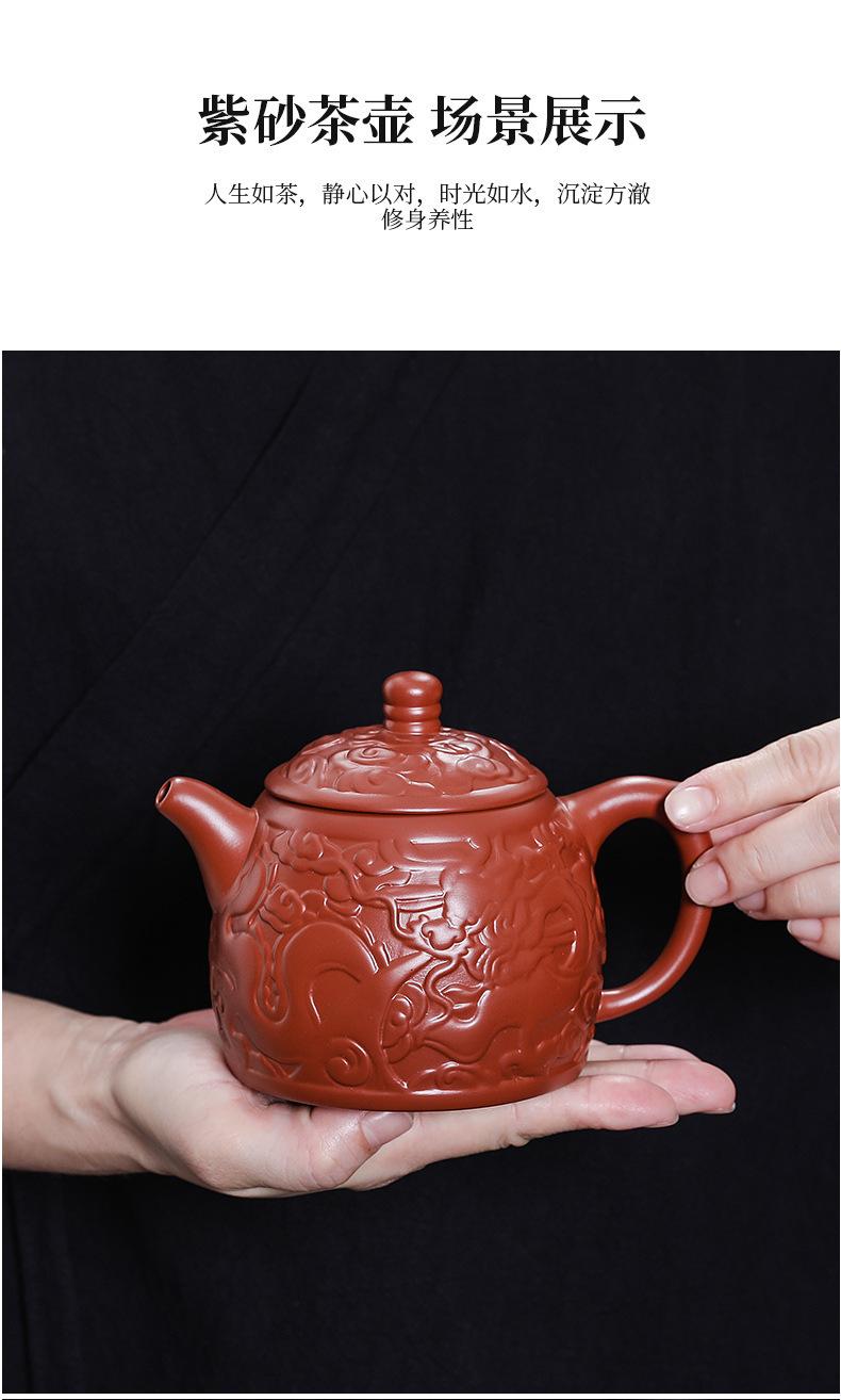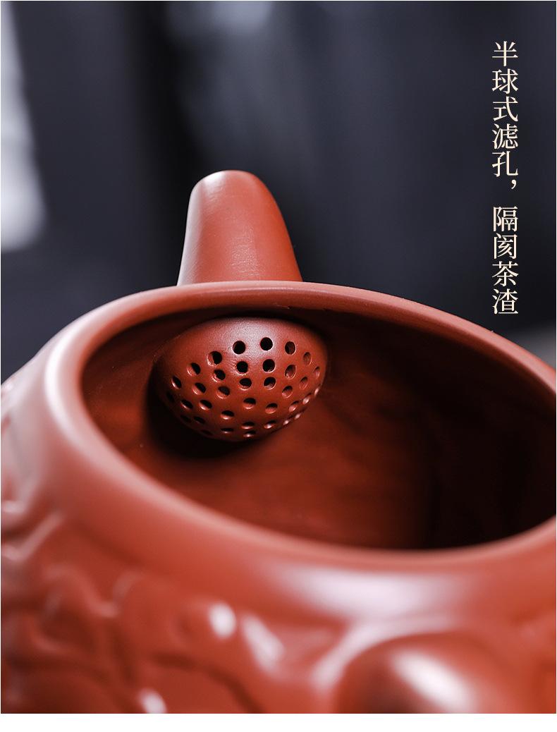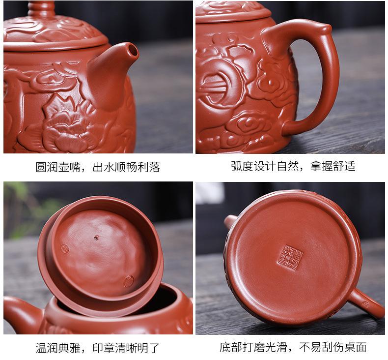 Tetera de arena púrpura de gran capacidad, olla de barro Zhu, tetera de kung fu de cerámica para el hogar, túnica roja, relieve exquisito, olla individual Xi Shi