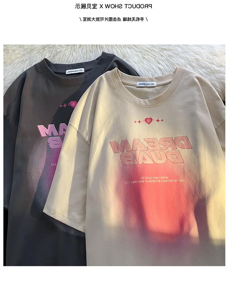 Dropshipping 2025 Verano Nuevo Camiseta de Graffiti de Manga Corta para Mujer, Trendy Suelta Pareja Manga Media Nicho