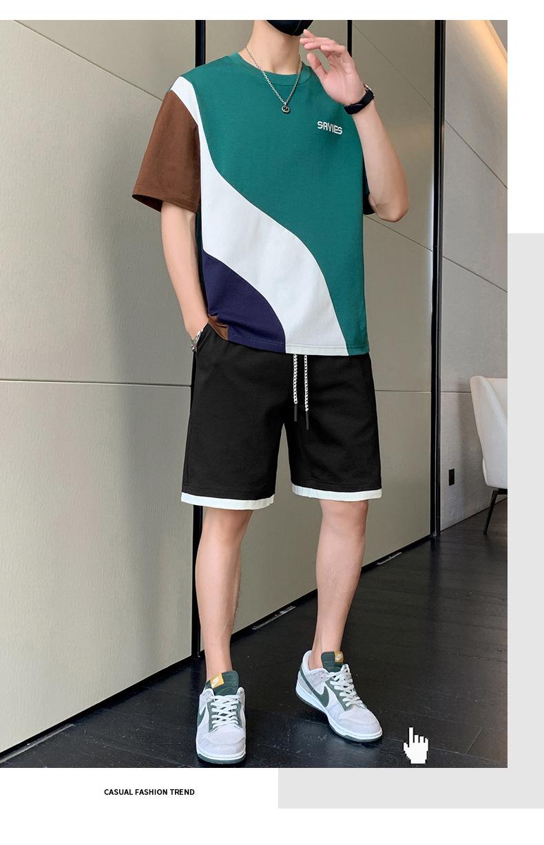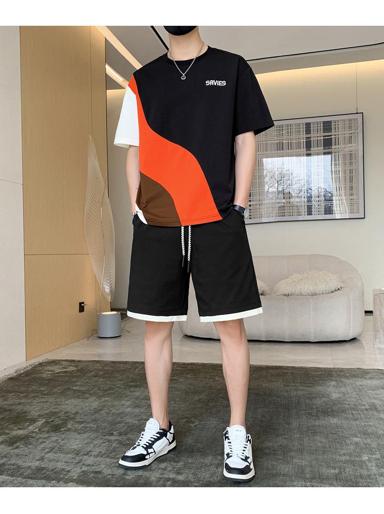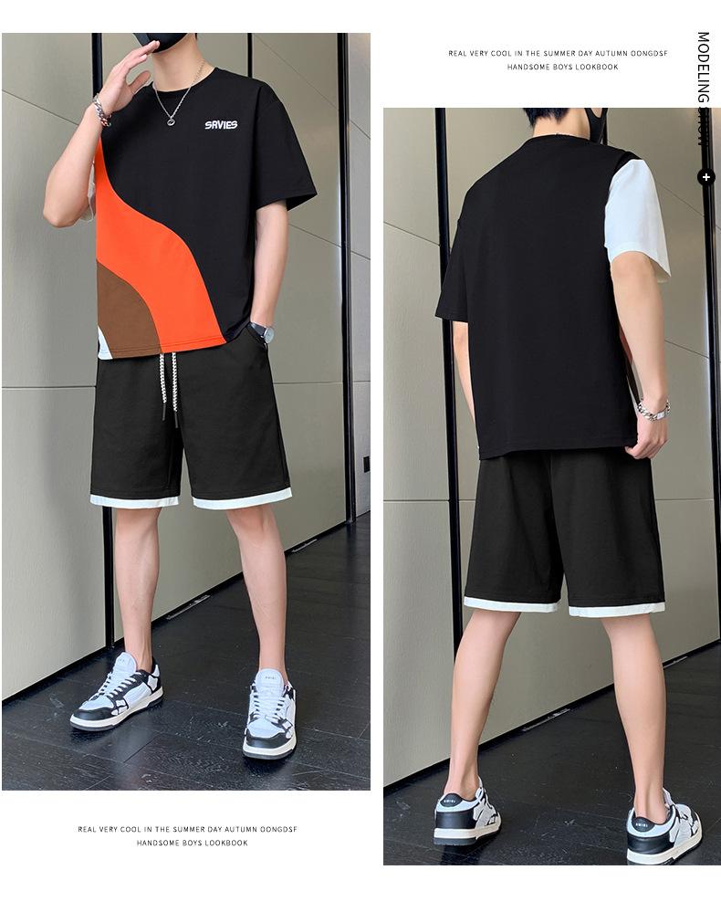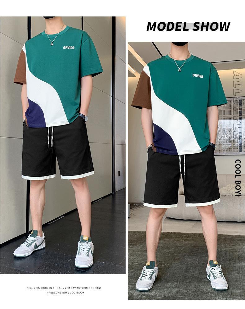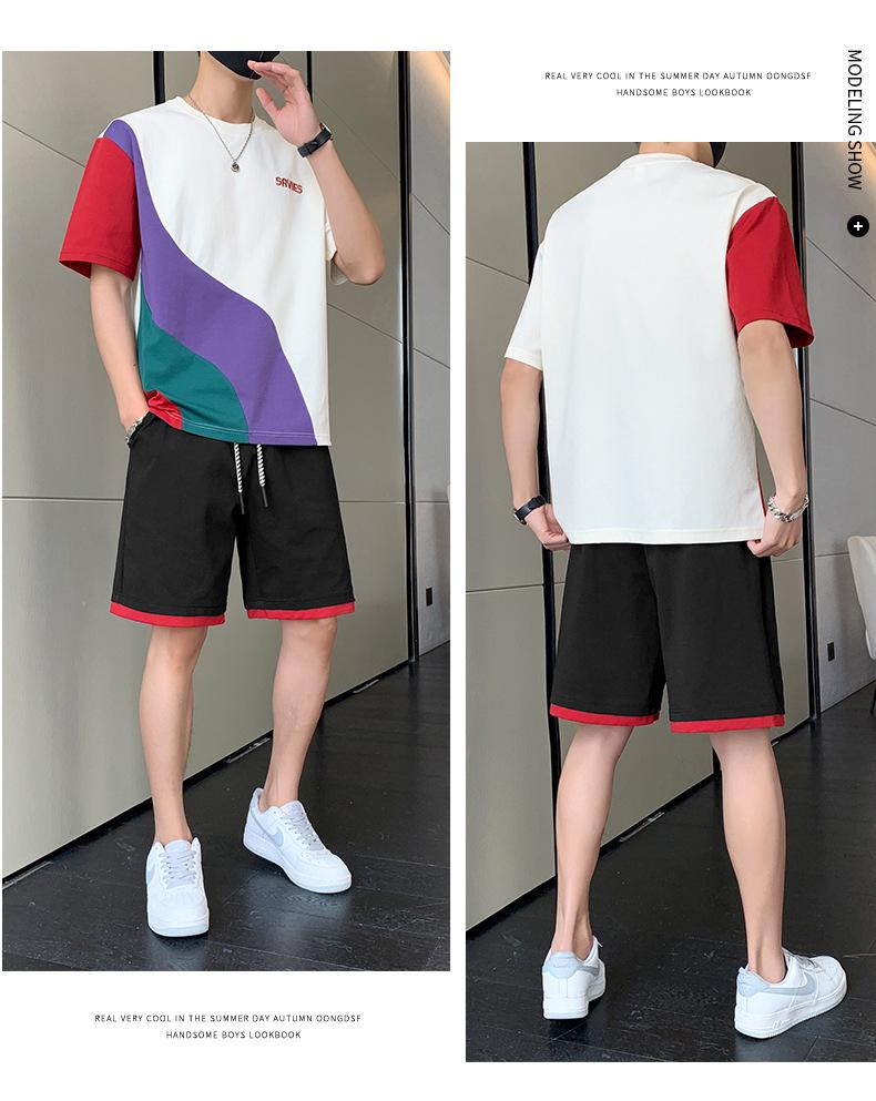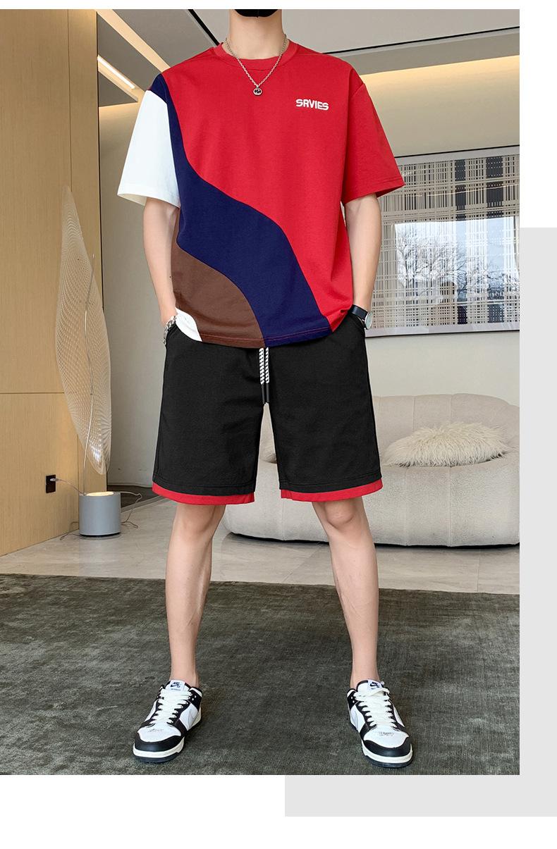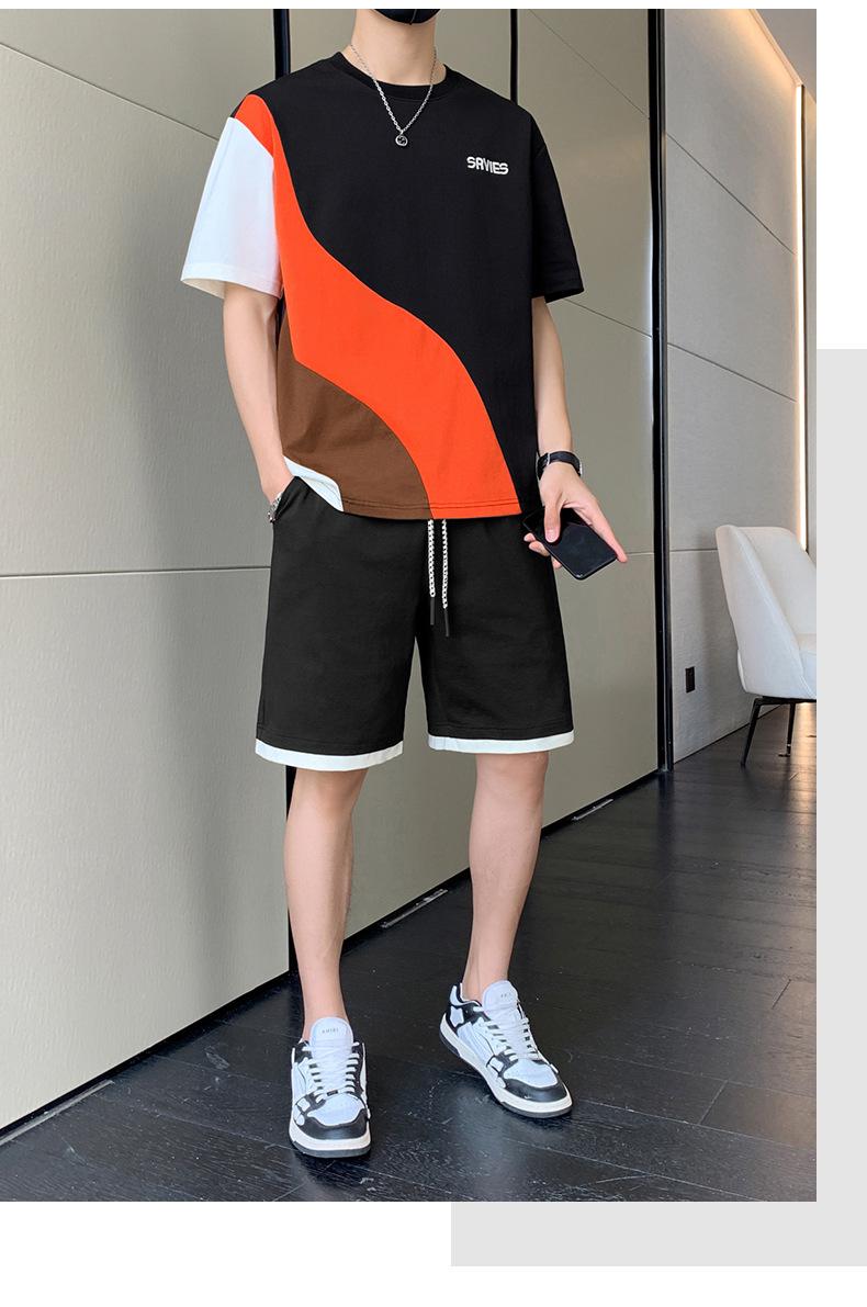 Moda de verano para hombre nuevo traje de marca de moda ins casual versátil Camiseta holgada de manga corta y pantalones cortos para jóvenes