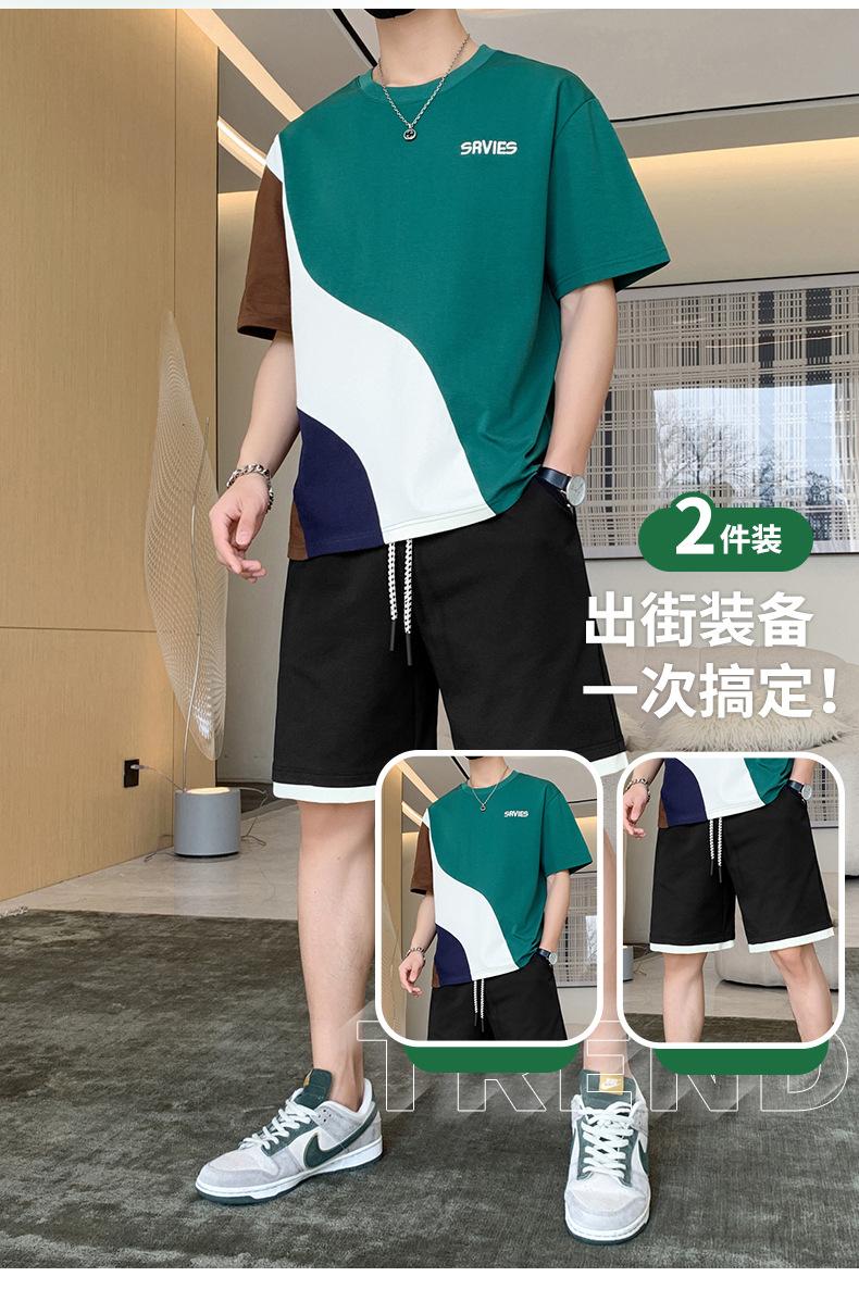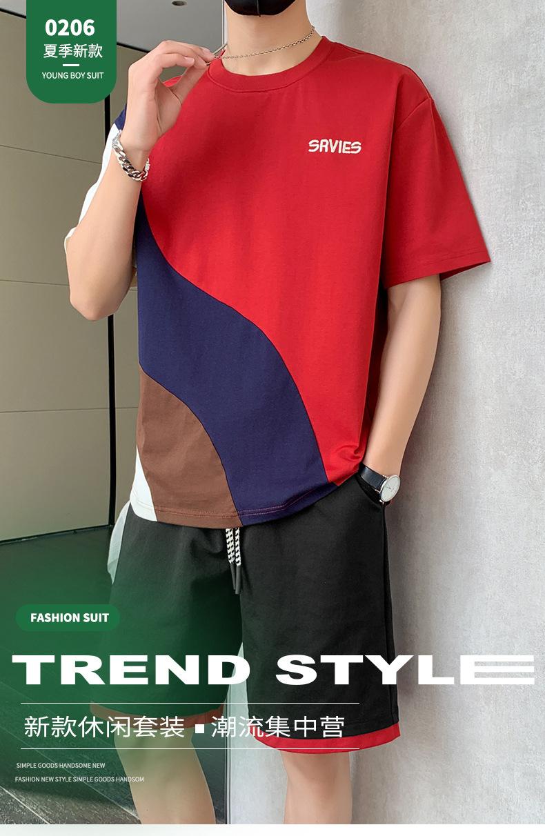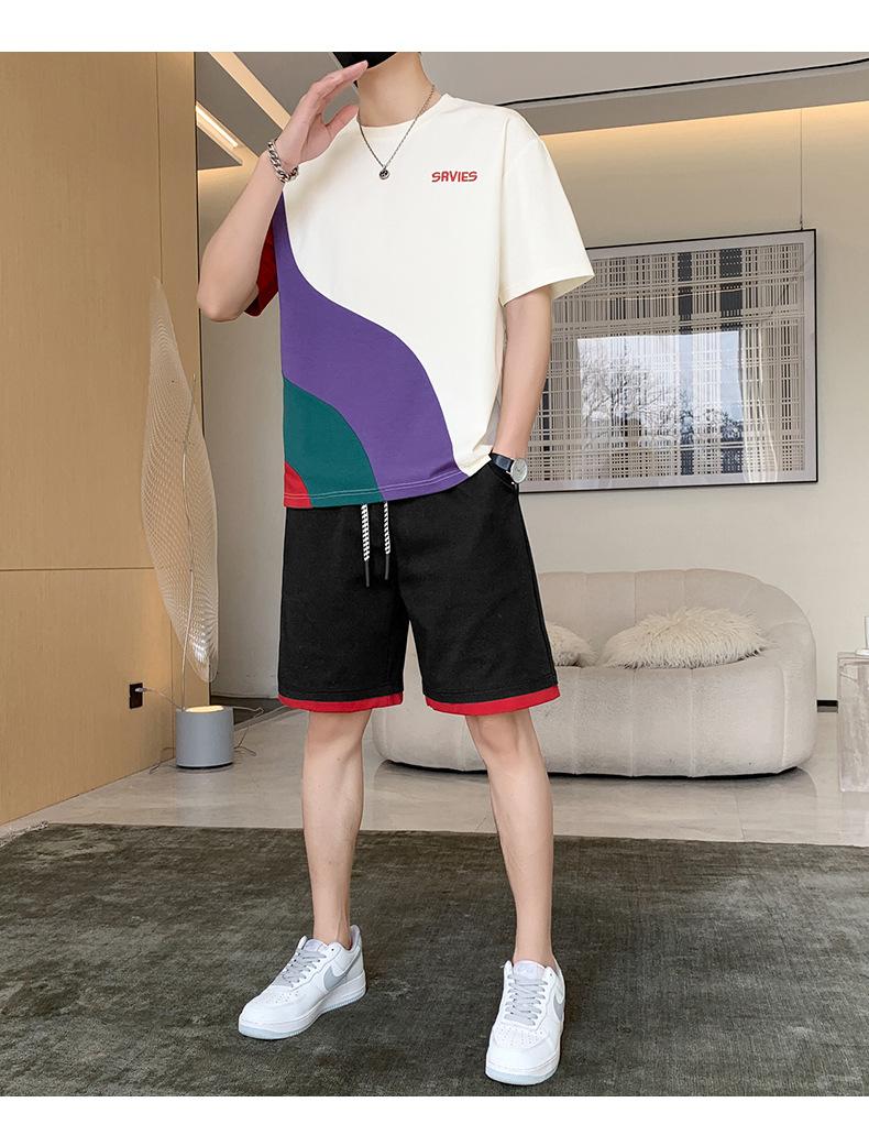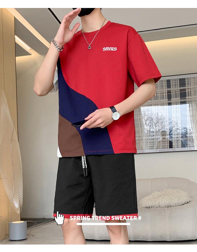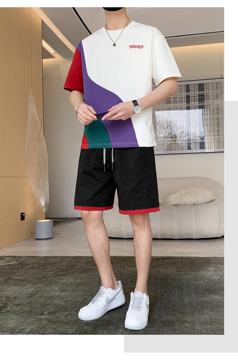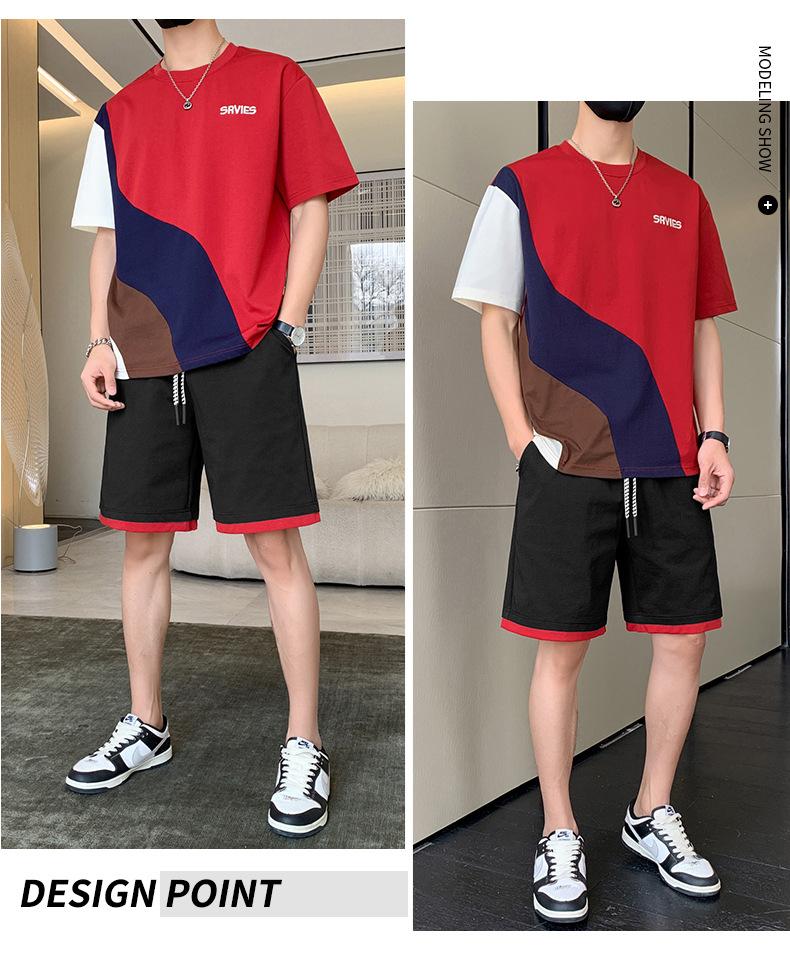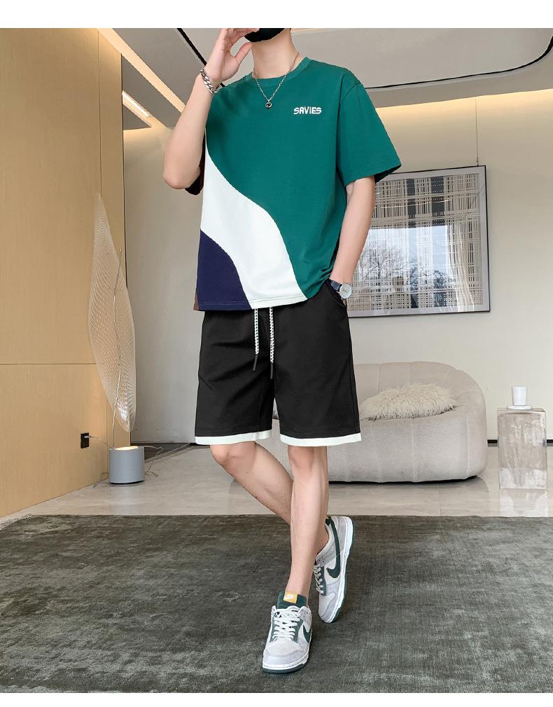 Moda de verano para hombre nuevo traje de marca de moda ins casual versátil Camiseta holgada de manga corta y pantalones cortos para jóvenes