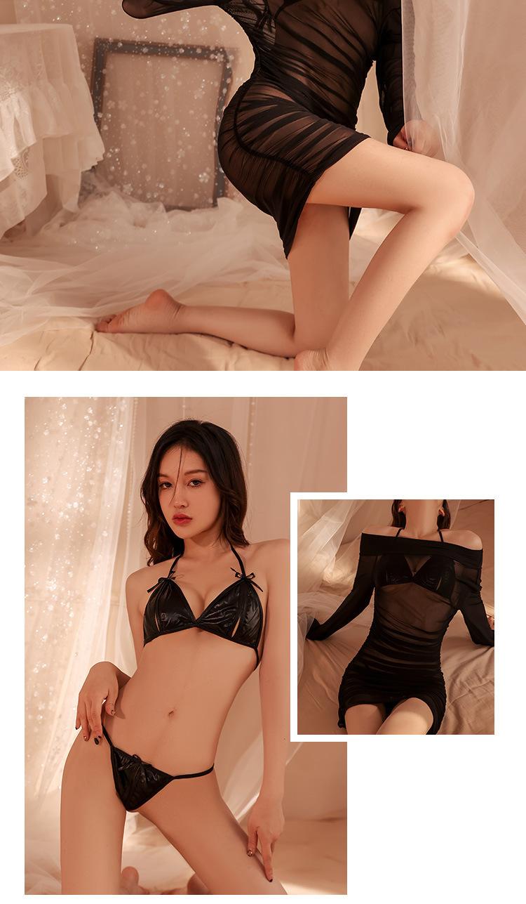 Compra Lencería sexy secretaria femenina pasión traje de malla sexy tentación uniforme abierto cuero tres puntos pijama transparente femenino al por mayor en Joom.pro