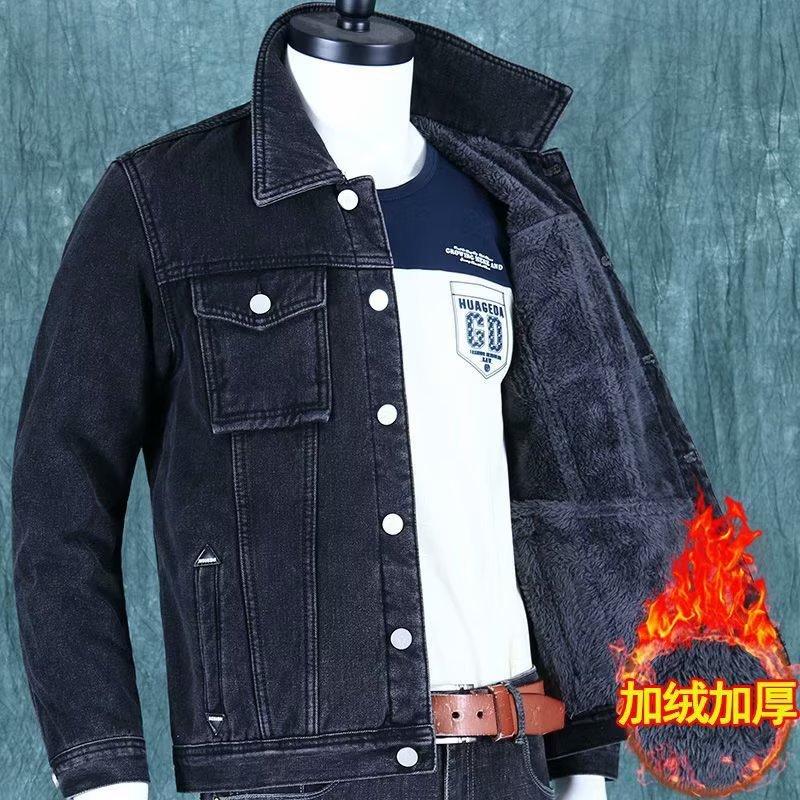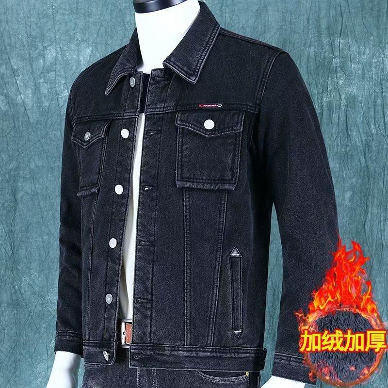 Chaqueta de Mezclilla Cálida de Otoño e Invierno para Hombre, Marca de Moda, Talla Grande, Forrada con Felpa, Gruesa, Ropa de Trabajo para Hombre, Chaqueta de Trabajo con Múltiples Bolsillos para Hombre