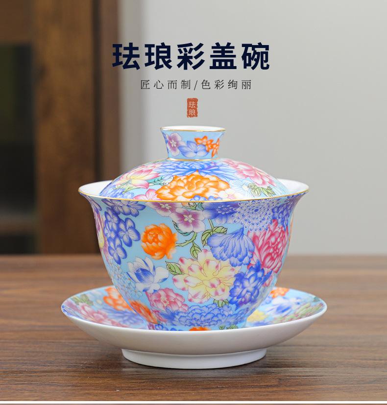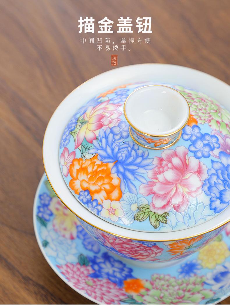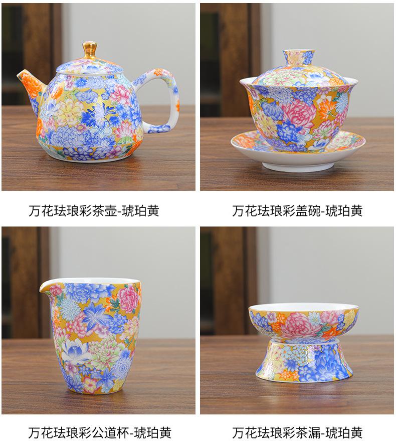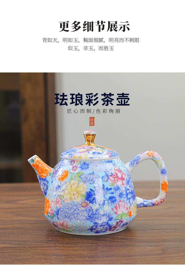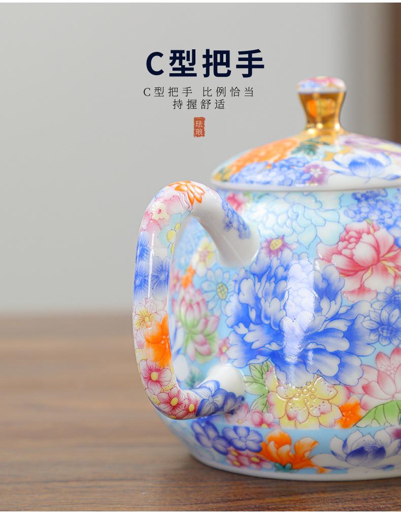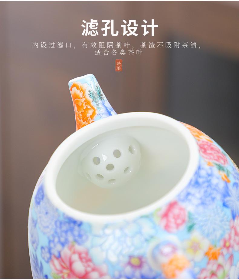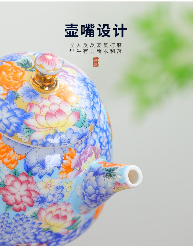 Tetera de color esmalte chino cerámica tetera Wanhua hogar tetera individual tapa tazón mar de té hecho a mano pintura dorada juego de té kung fu