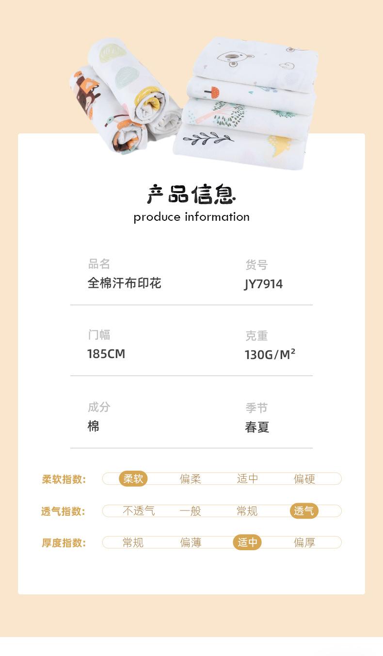 En stock, verano, 130 g, tejido de punto de jersey de algodón con estampado de dibujos animados, pijama de una sola cara, camisón, tela de algodón para bebé.