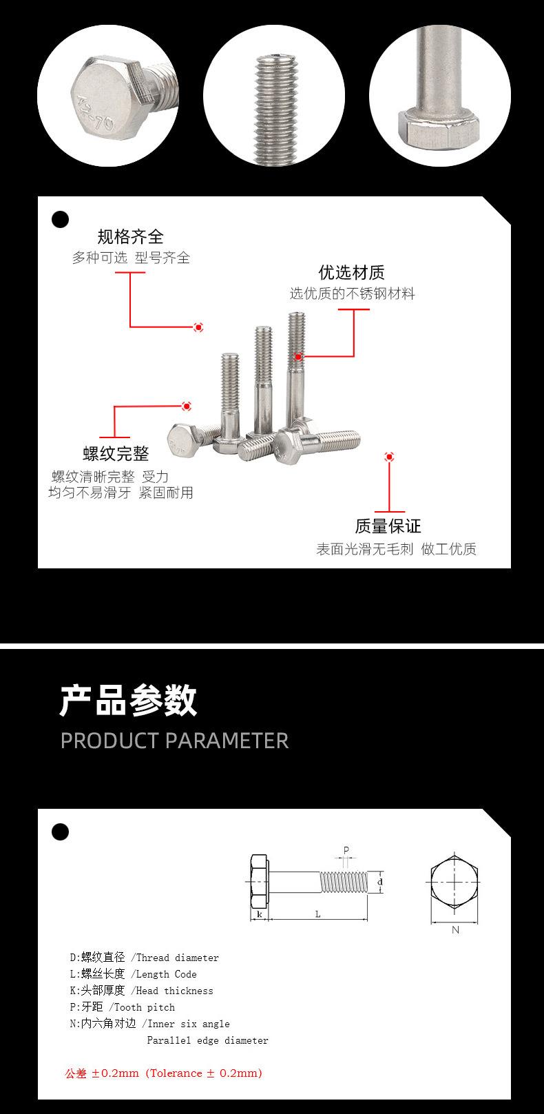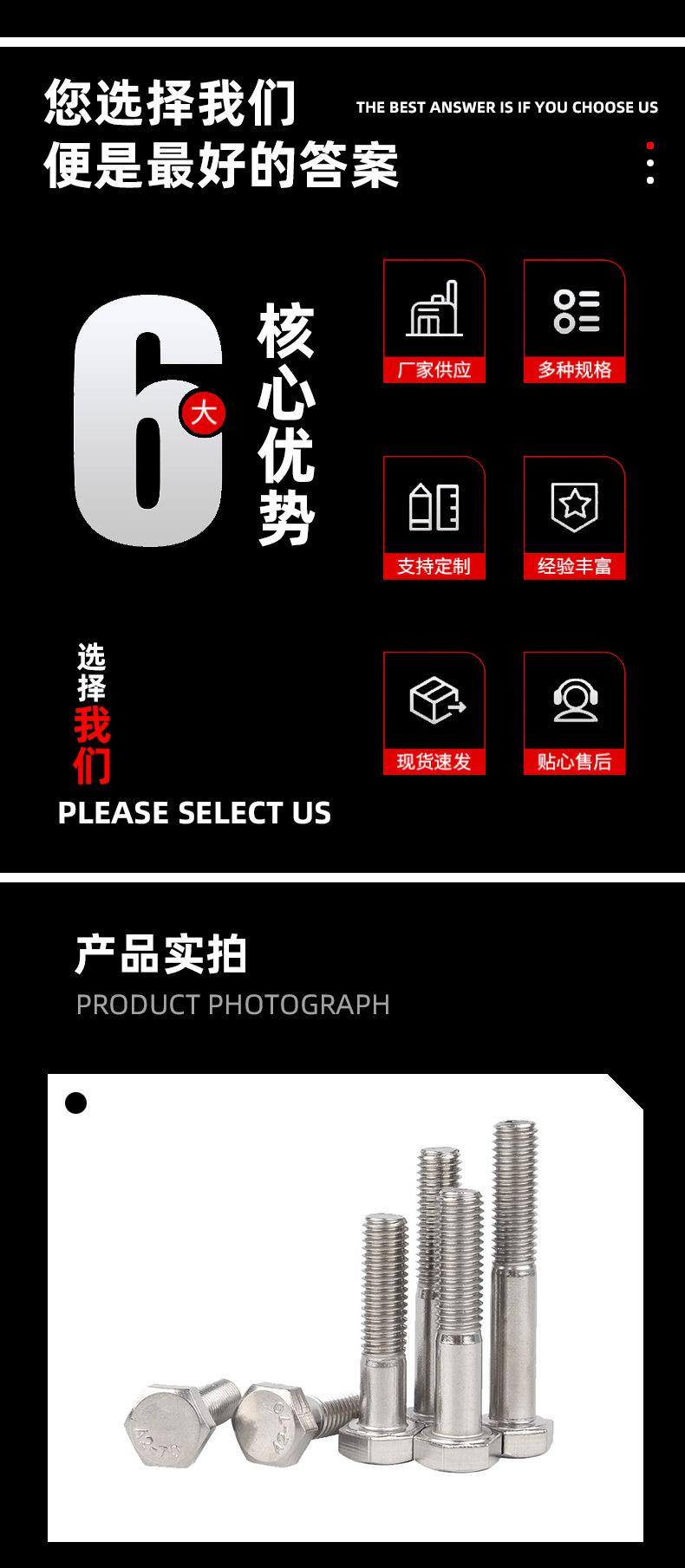 Tornillo de Máquina de Acero Inoxidable 304 de Cabeza Hexagonal Din931 Hexagonal Externo Varilla Gruesa Rosca Parcial Tornillo M8M10M12M16