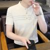 Polo informal de manga corta con solapa para hombre, camiseta de verano 2024, polo holgado a rayas para hombre