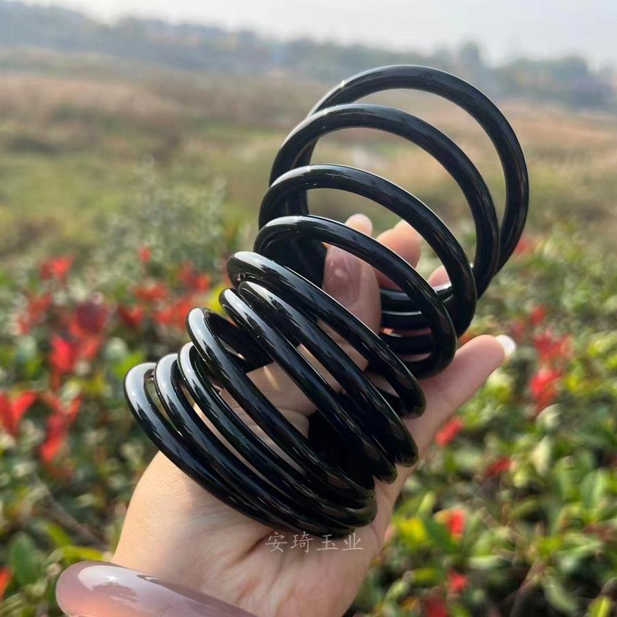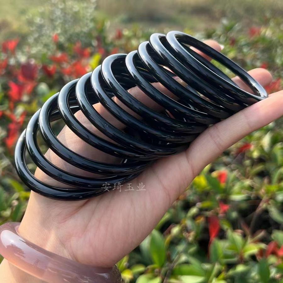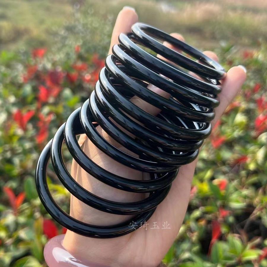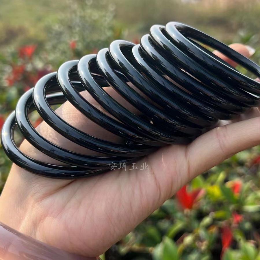 Pulsera de Calcedonia Negra Brasileña de 6 mm Barra Redonda Ágata Negra Pulsera Cascabel Artesanía de Jade Pulsera de Belleza Productos de Jade al por Mayor