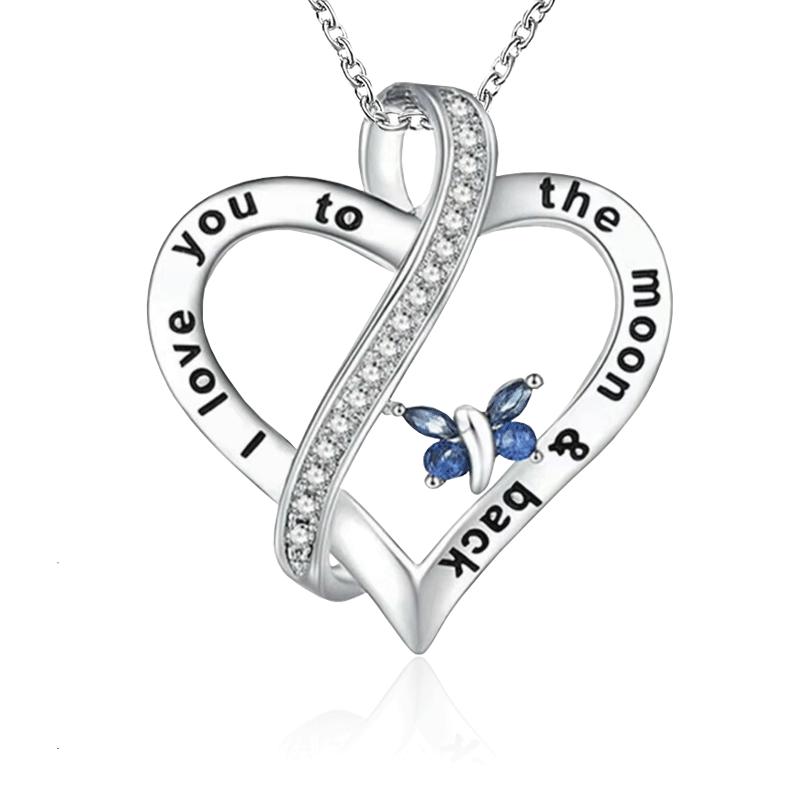 Nombre del producto: Collar de corazón de mariposa de cristal