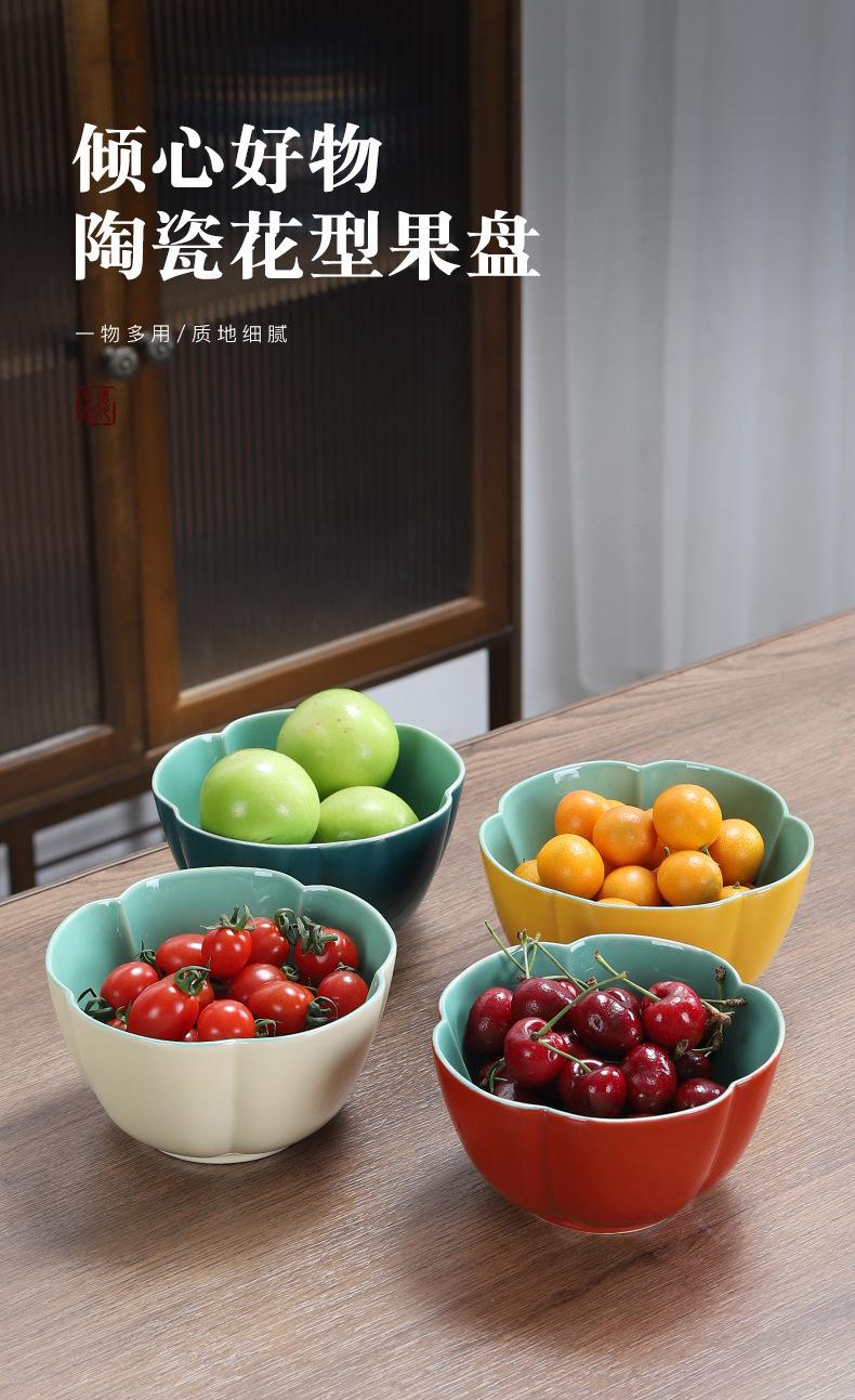 Plato de cerámica para fruta, para sala de estar, oficina, ligero, lujoso, exquisito, para mesa de centro, flor, creativo, para té de la tarde, plato de fruta seca, ensalada, explosiones