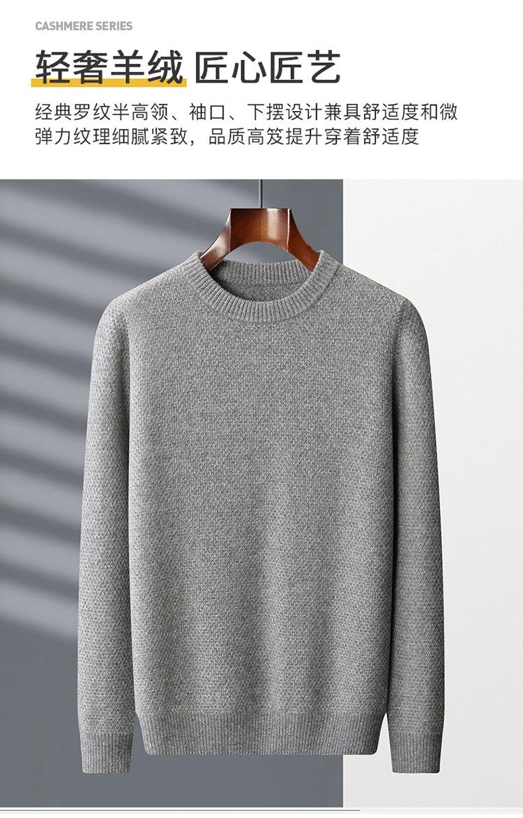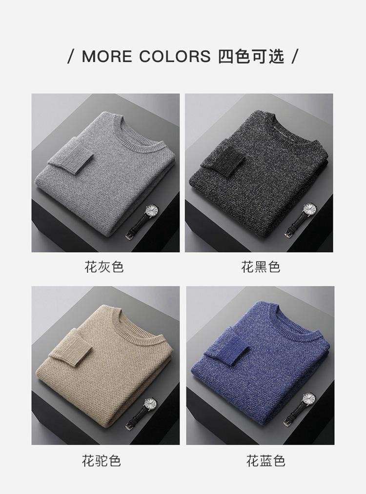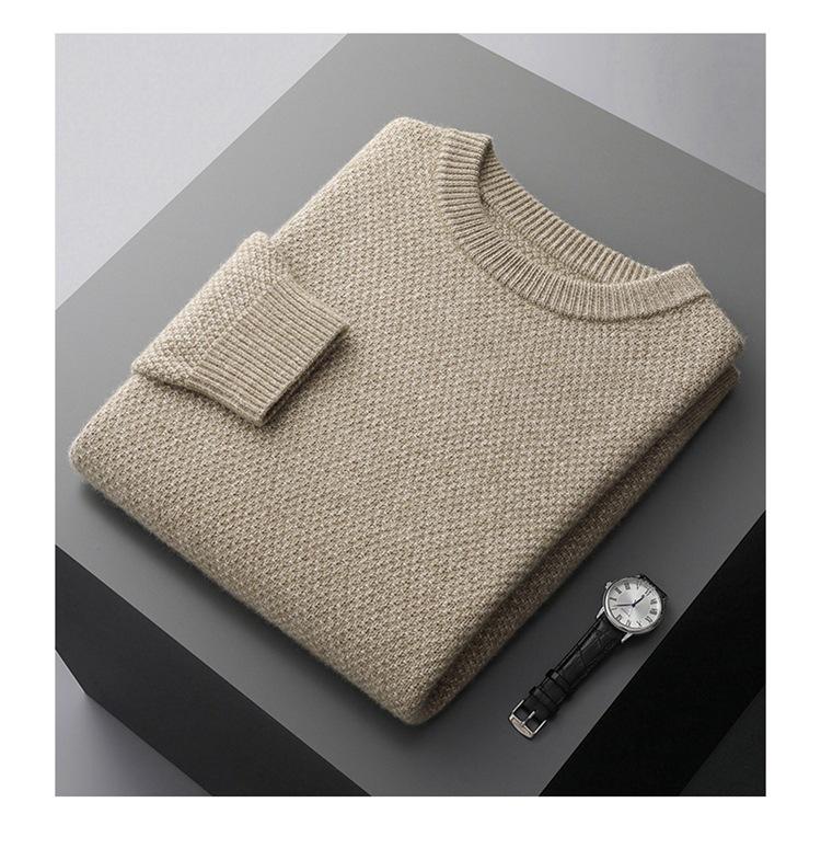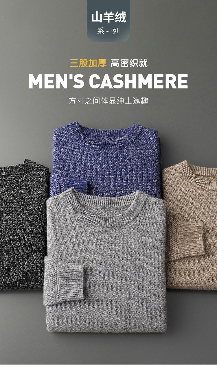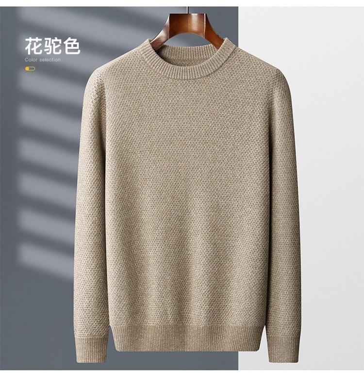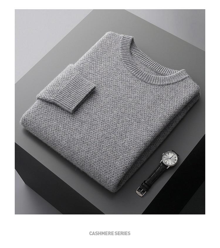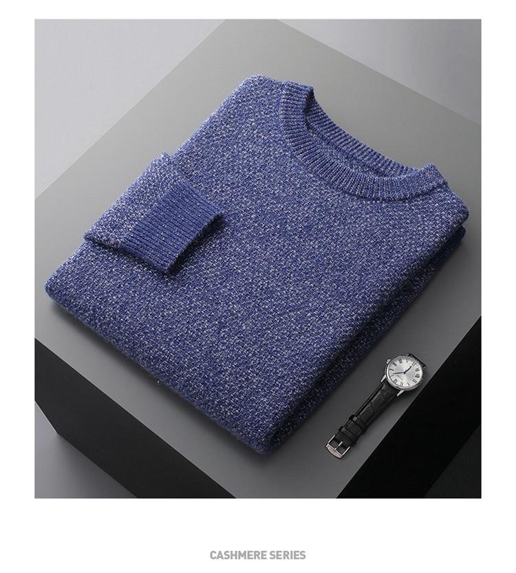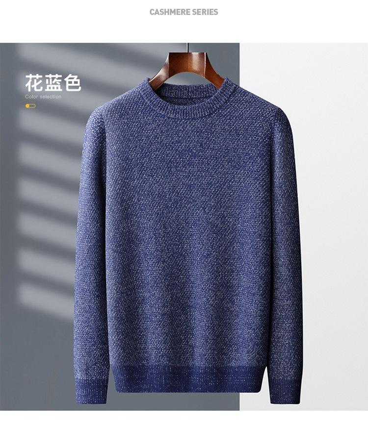 Suéter de cachemira de punto para hombre, suéter de cachemira grueso de otoño e invierno, suéter de cuello redondo, suéter informal de cachemira para papá de negocios