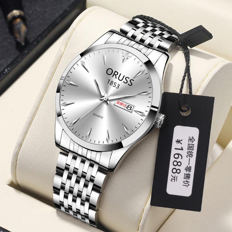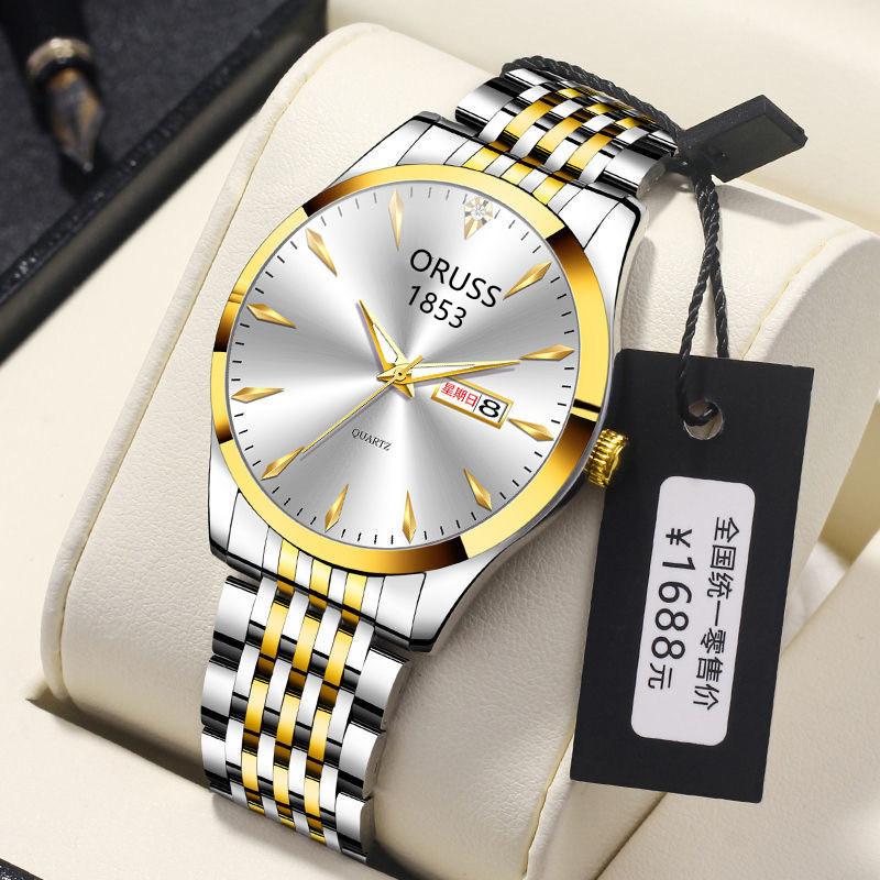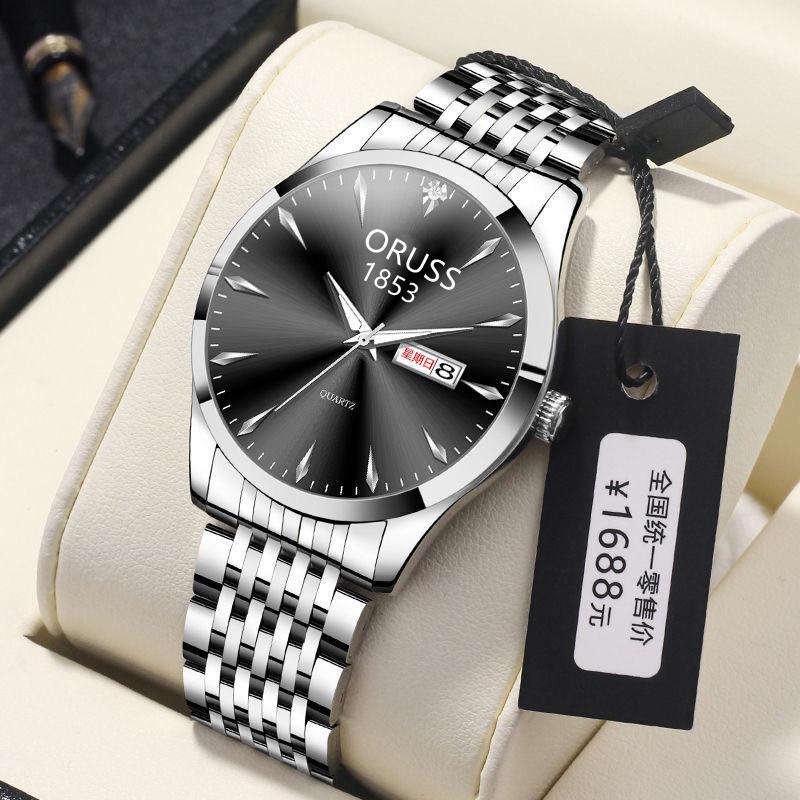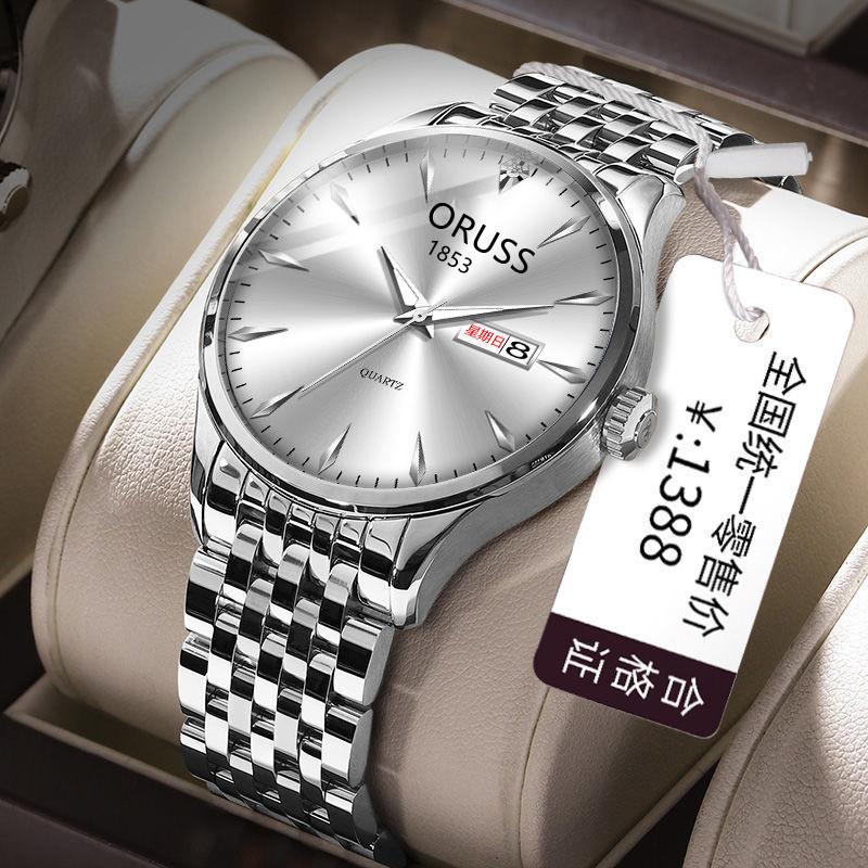 Reloj de cuarzo de negocios, reloj de cuarzo resistente al agua, reloj de movimiento automático, reloj para hombre, reloj de hombre con calendario doble luminoso de estilo coreano